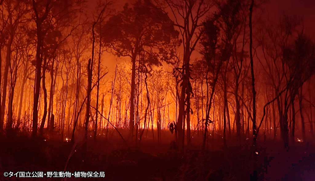 2月12日、東北部ナコーンラーチャシーマー県サケーラート環境研究所(サケーラート森林地帯)で大規模な山火事が発生。森林約7000ライ(約11.2㎢)以上が焼失した。