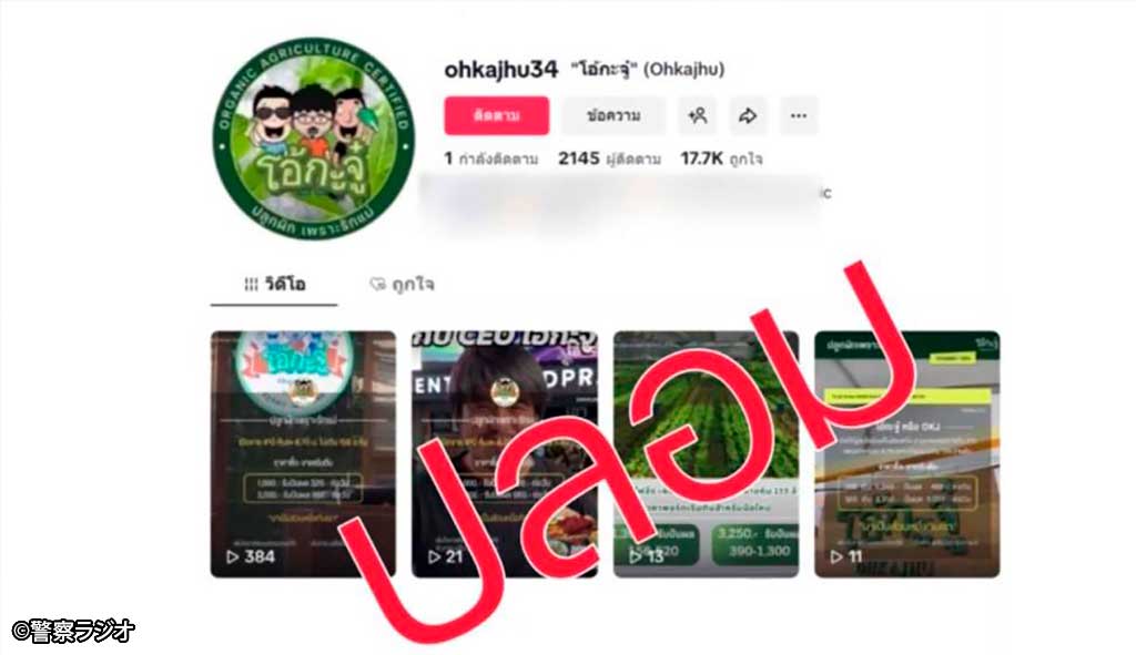 また、先日確認された特殊詐欺被害ケースについて詳細を明らかにした。被害者の元公務員男性はネット広告からタイのオーガニック食専門店ブランド「Ohkajhu(オーカジュー)」を装った投資プログラムに加入。広告では高利回りを短期間で得られると勧誘し、男性は段階的に資金を送金したという。最終的に合計45回送金してしまい、2,380万Bを騙しとられた模様。