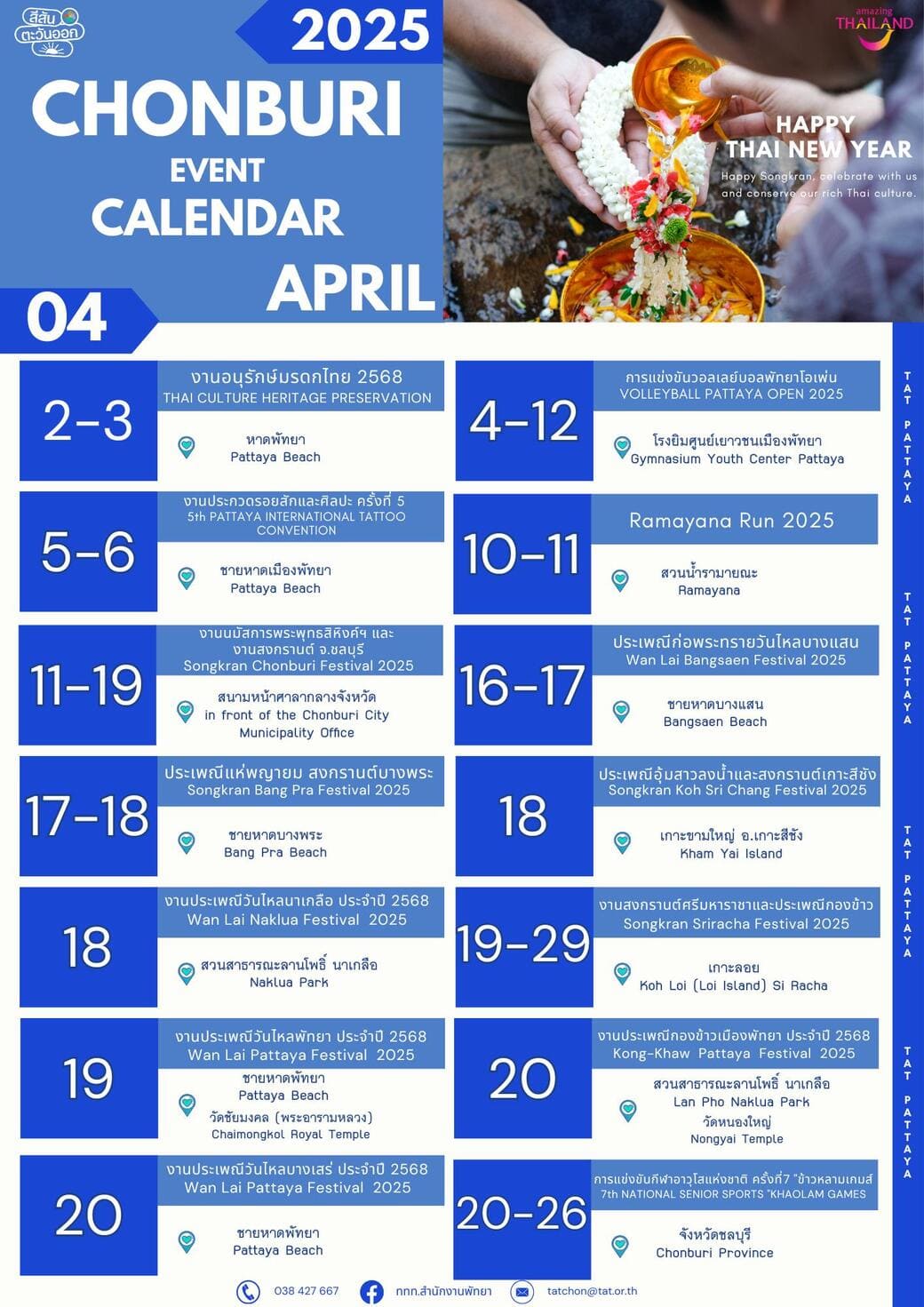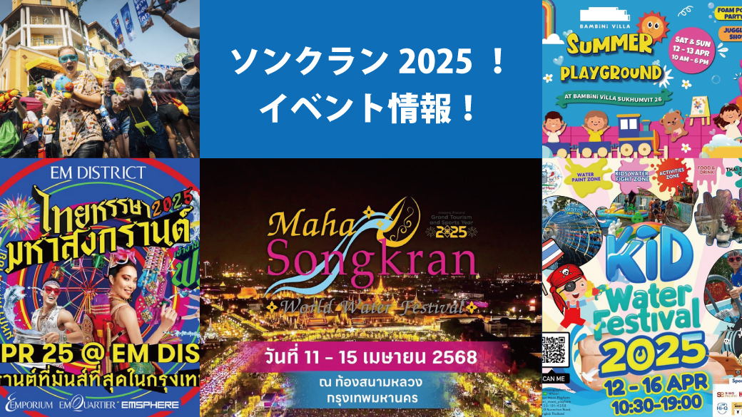2025.04.9 タイローカルニュース 2025年ソンクランイベント情報!【タイ・バンコク・チョンブリ】 2025年ソンクランイベント情報! 【タイ・バンコク・チョンブリ】 2025年ソンクランイベント情報! 【タイ・バンコク・チョンブリ】 4月12日から16日までソンクラン休暇の方も多いのではないでしょうか? バンコクやチョンブリーで開催するソンクランイベント情報をまとめました。 今年も楽しいイベント盛りだくさんです! 今週のタイのニュース動画まとめ WiSE公式LINE登録後に動画が視聴可能となります。 今週のタイのニュース動画まとめ