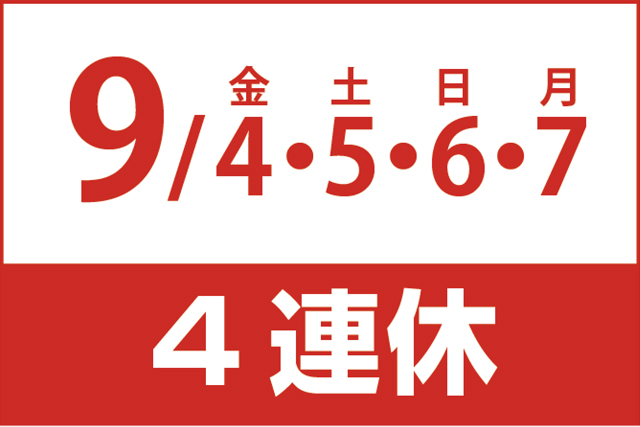 9月4日と7日を休日として、土日を挟んで4日から4連休になる。
