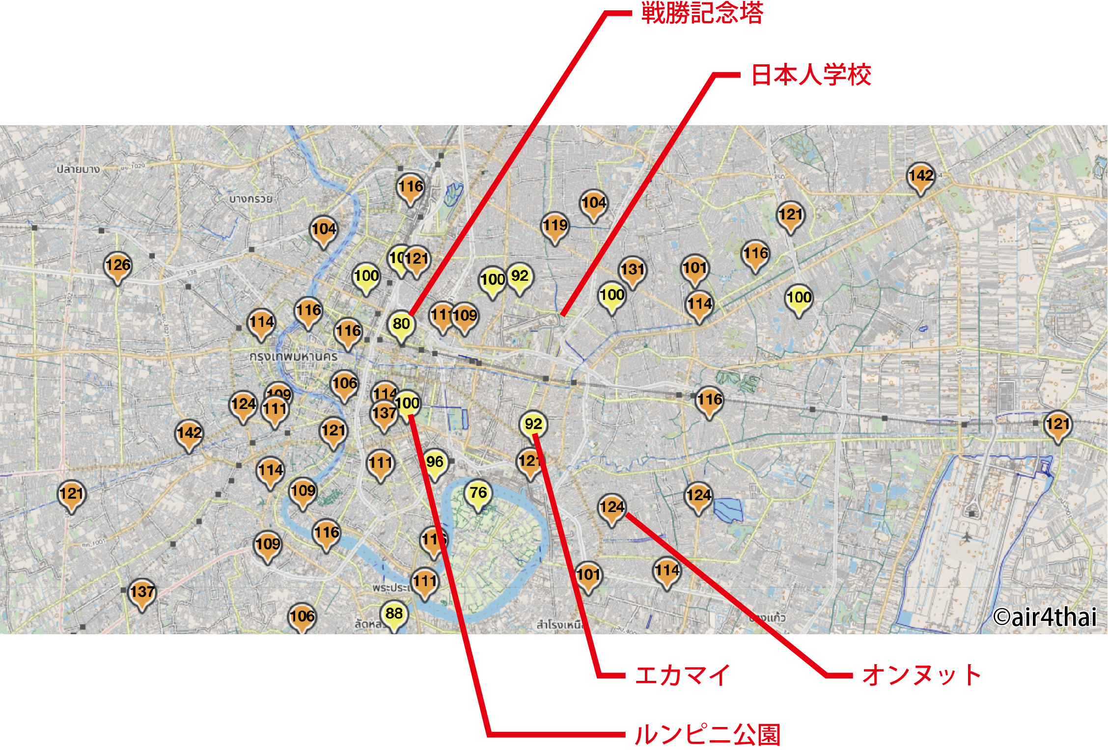 なお、PM2.5の状況は、下記のサイト、または「Air4Thai」「AirBKK」というアプリで確認できる。