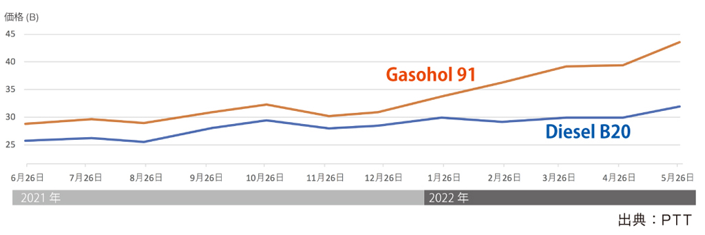 タイでは、同事務局が燃料基金を負担することでディーゼル燃料価格を1ℓあたり31.94B(現時点の価格)に抑えているが、その負担が重くなってきたことから1Bの値上げに踏み切るという。