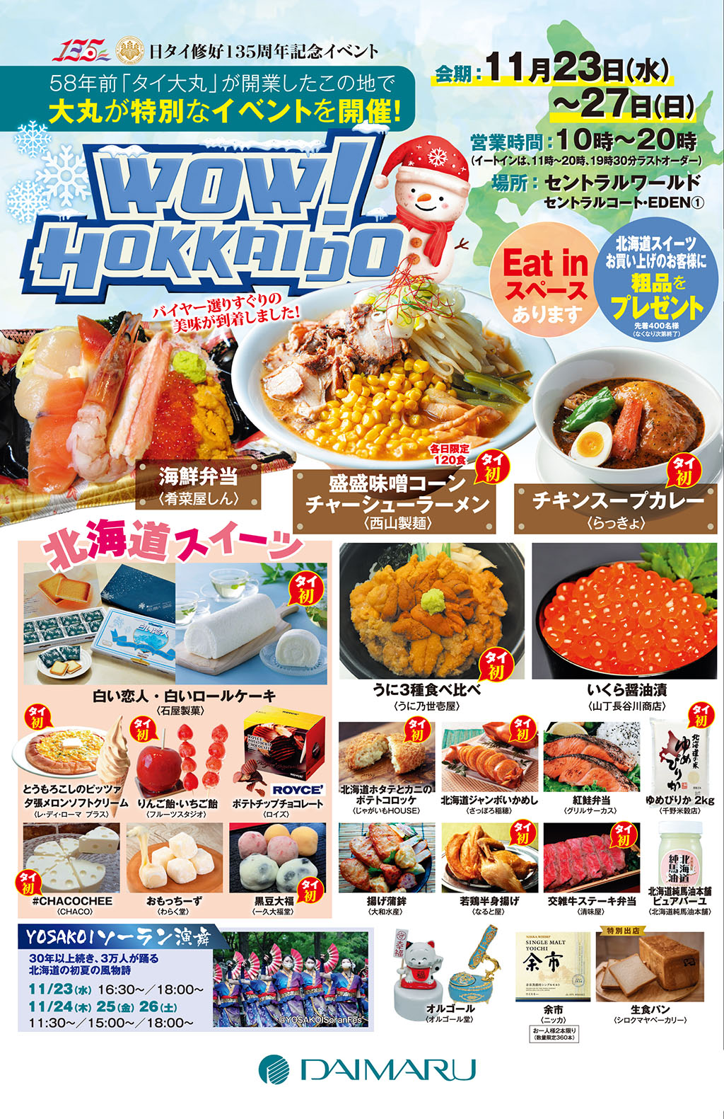 なお、会場の特設ステージでは「YOSAKOIソーラン演舞」も披露される。