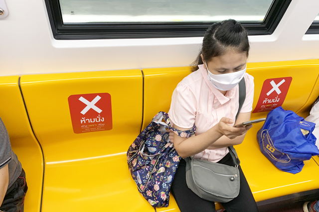 ・MRTは8月まで500バーツ以上をチャージすると、布マスクを1枚無料でもらえる。対策としては、家族や一緒に移動している人は隣の席に座ることが可能となる。乗車券の販売の際や、駅構内、車内では人と人との距離を1〜2メートルあける。利用者は駅員との触れ合いを減らすために、自動券売機でプリペイドカードへチャージすることができる。