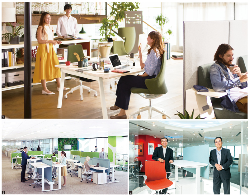 現在同社が力を注ぐのは、先進企業が進んで取り組む“働き方改革”の本格的なタイでの展開。商品・内装設計から施工まで、一貫したワンストップソリューションを提供。「生産性を高める空間造りに必要な支出は、コストではなく投資」という思想のもと、日本人とタイ人のデザイナーがサポートする万全の構えだ。
