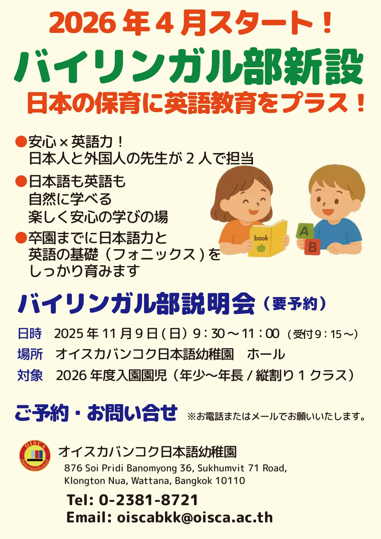 | 場所 | オイスカバンコク日本語幼稚園 ホール |
