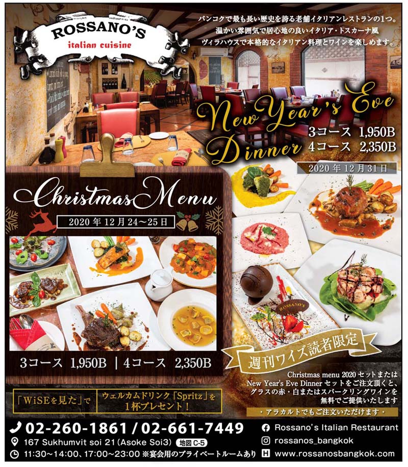 2020.12.21 お得情報 , プロモーション期間終了 【12/24(木)〜12/25(金)】クリスマス限定コースワイズプロモーション有り ☆ROSSANO’S☆ こちらのプロモーションは既に終了しています。 その他のプロモーション情報一覧はこちら。 クリスマス限定のコース料理をご用意 3コース 1,950B 4コース 2,350B 「ワイズを見た」でウェルカムドリンク1杯をプレゼント♪ https://www.facebook.com/rossanosItalianRestaurant この記事をSNSでシェア! Tweet Share LINE リンクをコピー