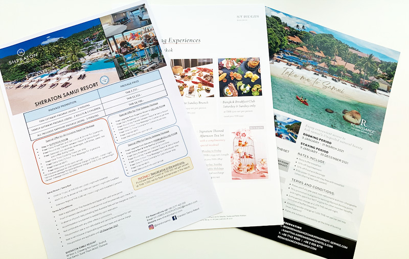 「JW MARRIOTT(カオラック)」、「SHERATON(サムイ)」、「ST REGIS(バンコク)」など、世界的に有名な高級ホテルが集結して、お得な宿泊プランやディナーバウチャーなどを販売中。