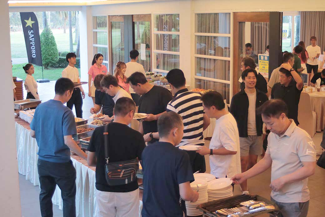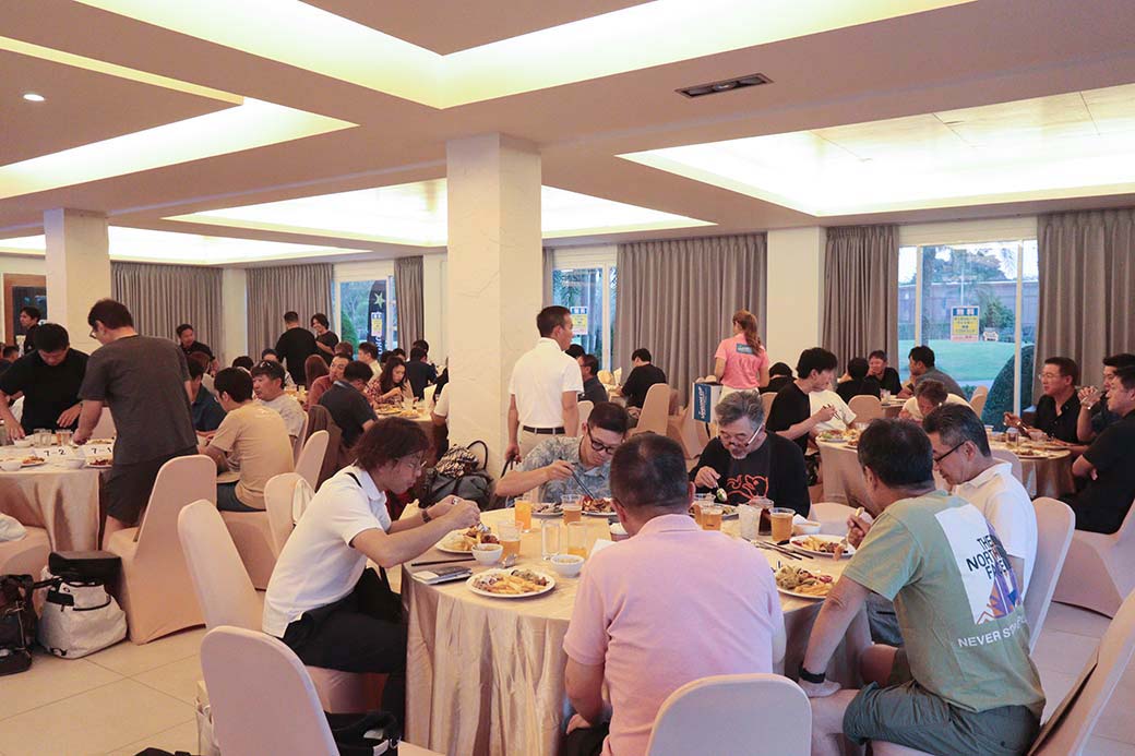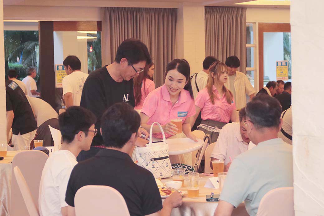 ゴルフプレー後のパーティでは飲み放題のビュッフェをお楽しみ頂き、順位発表や入賞賞品の授与、ラッキードローも大盛り上がりで第2回のゴルフコンペは大盛況のうちに幕を閉じました。