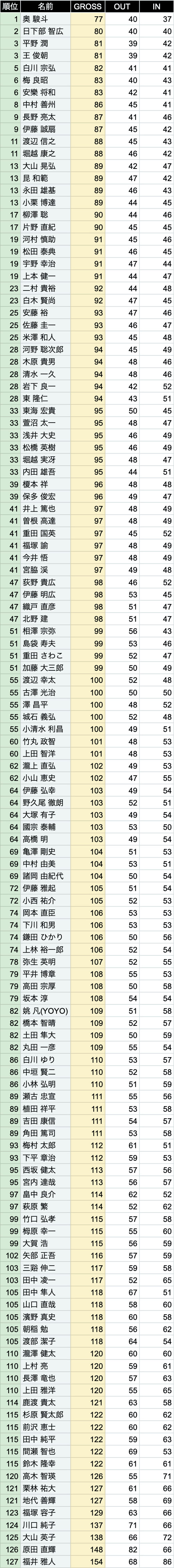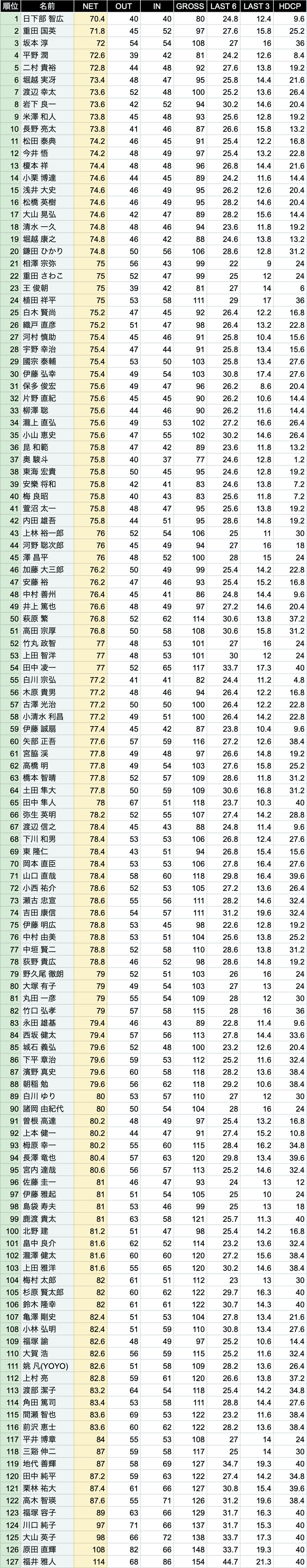 ※ネットが同スコアの場合はLAST6が低い方、LAST6も同数の場合はLAST3が低い方が上位、LAST3も同数の場合18番ホールのスコアが低い方が上位