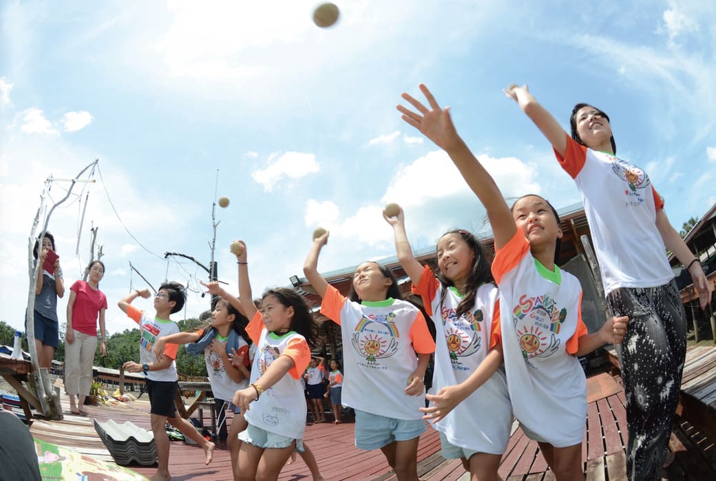 SAWANの基地「ピタック島」や「カンチャナブリー」で実施されるキャンプイベント。カンチャナブリーでは滝下りを、ピタック島では夢を叫び、環境ボール(環境保全につながるEM菌を使用)を海に投げるという。