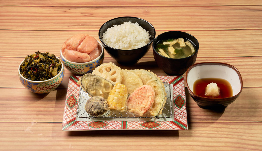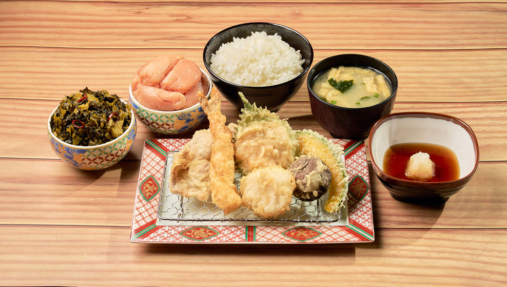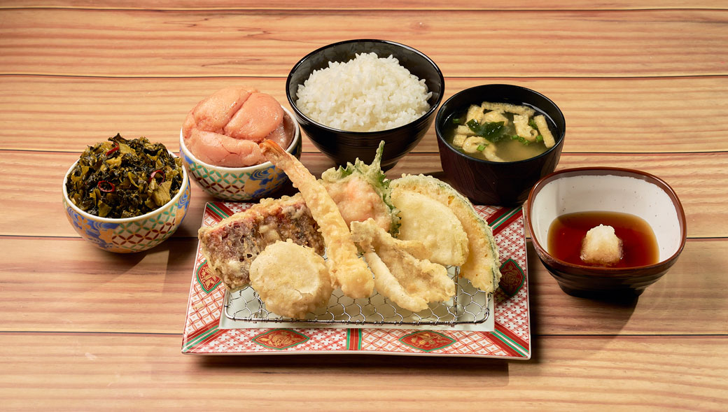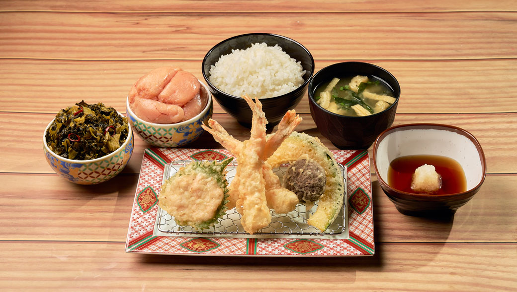 定食と天丼メニューを注文の方のみ、ごはん、味噌汁、辛子明太子・辛子高菜がおかわり自由。