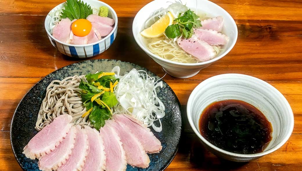 【鴨トロつけ蕎麦 350B】【鴨トロ丼 180B】【冷やし鴨トロ塩ラーメン 250B】
