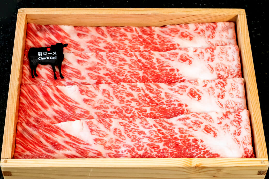 写真は日本三大和牛のひとつ「近江牛」。滋賀県の自然の中、豊かな水と大地で育ち、香りと甘みのある脂が特徴