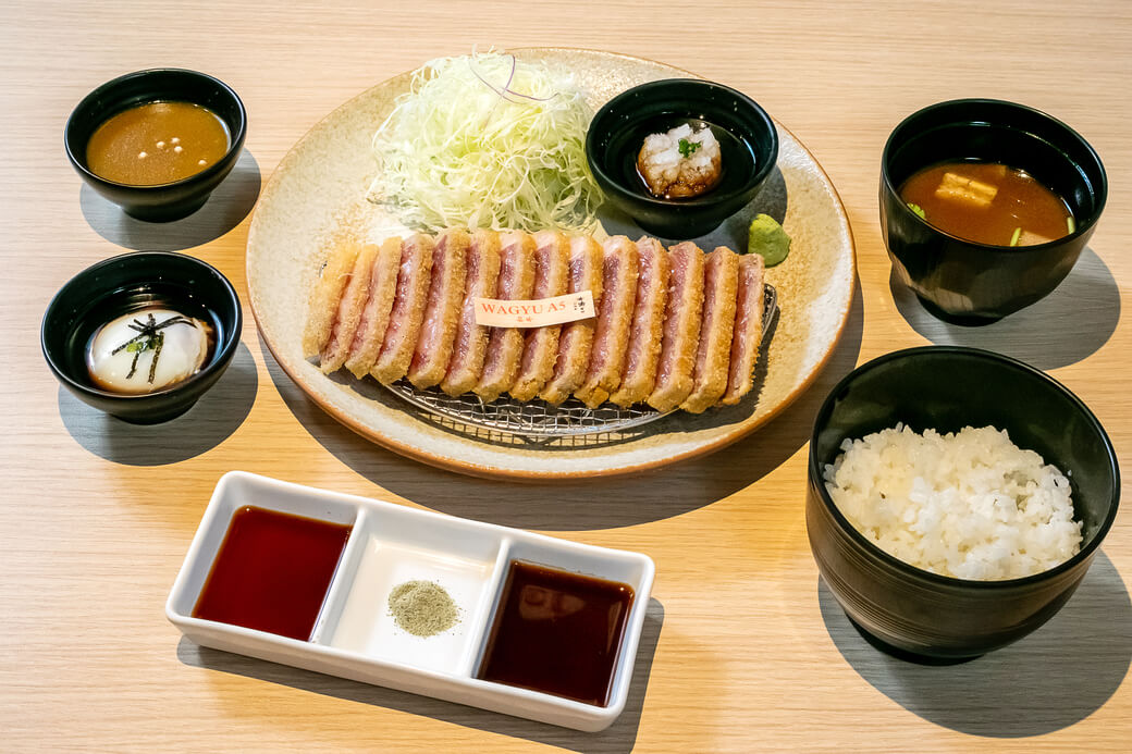 お好みで山椒塩やわさび醤油、牛カツソースで!