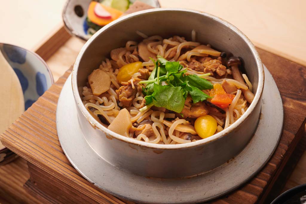 同店では毎日11時30分〜14時(L.O.13時30分)までお得なランチメニューを提供中(平日・土日祝)。定食セット(ご飯・味噌汁・香の物付き)、丼・釜飯(味噌汁・香の物付き)、そばセット(そばはせいろまたはかけそばから選べる)と種類豊富。