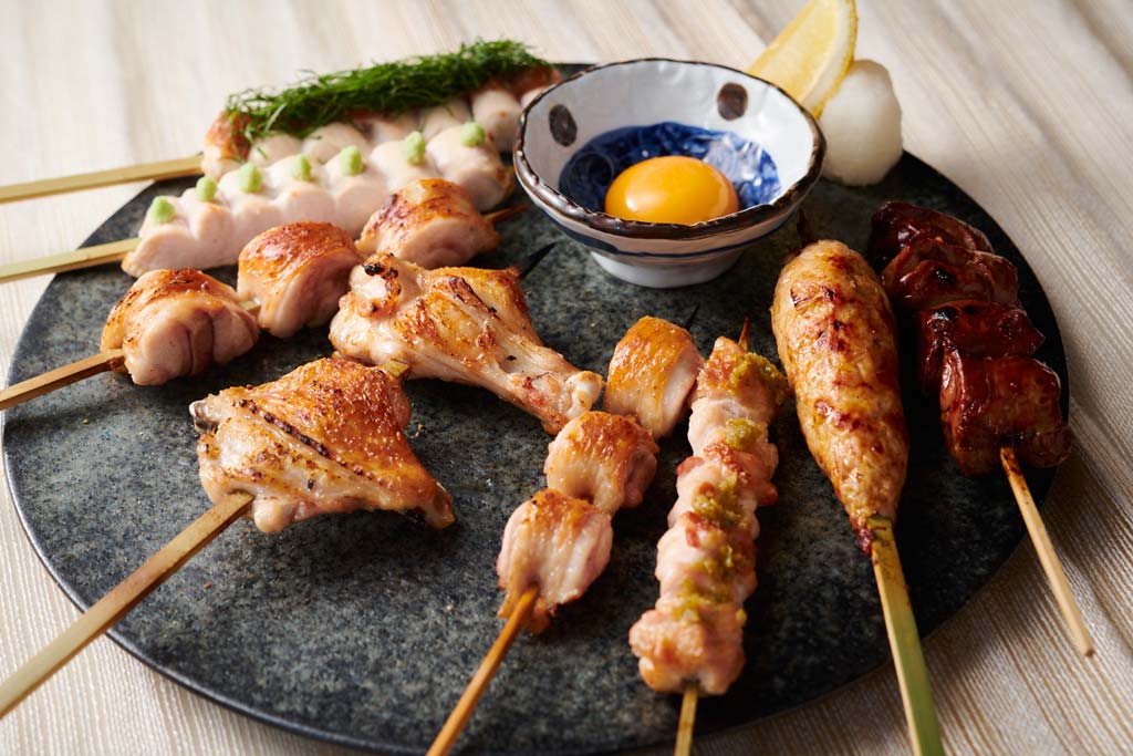 契約農場から毎日直送される地鶏は職人が丁寧に捌き、多彩な一品料理へと変身。炭火で香ばしくジューシーに焼き上げた自慢の串焼や、鶏の旨味が凝縮された半熟の親子丼など酒のツマミから〆まで充実のメニューが揃い、訪れるものを飽きさせない。