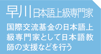 在日外国人にもそのような支援が必要で、日本語教師は言葉を教えるだけではなく、外国人と受け入れ側を結ぶ存在になりうると期待しています。