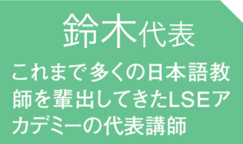 日本の「文化」発信や対話などを通じて世界各国との交流を深める「国際交流基金」(JF)と、有資格日本語教師養成専門校の「LSEアカデミー」(LSE)。共に「日本語の普及」という切り口で国際交流の促進を図る同志として、JFの早川日本語上級専門家と、LSEの鈴木代表、澤山講師、髙田講師の4人が今後の日本語教育について熱く語った。