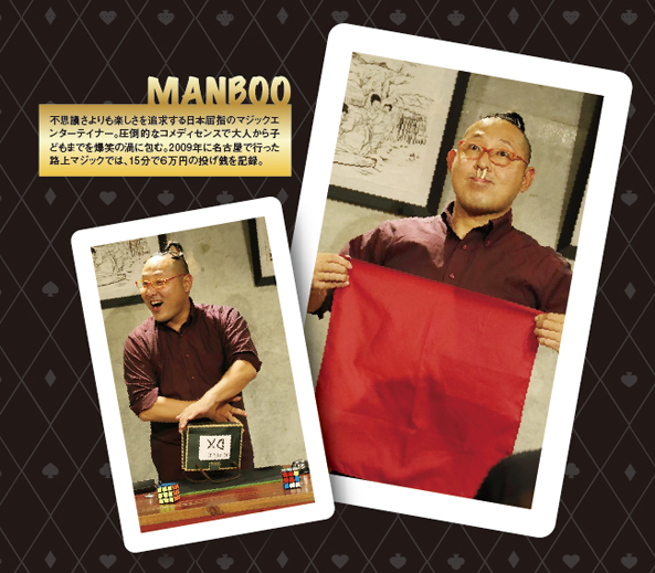 MANBOOさんはマジックの魅せ方が巧みで、子どもから大人まで大笑いするんです。