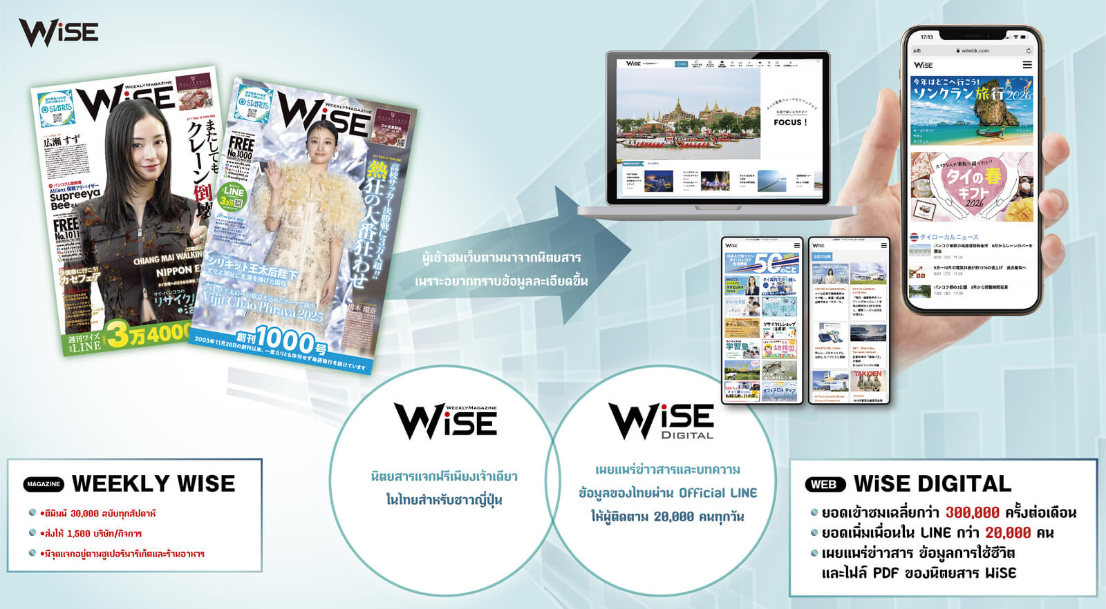 “นิตยสารแจกฟรี WEEKLY WiSE” และ “เว็บไซต์ WiSE Digital”