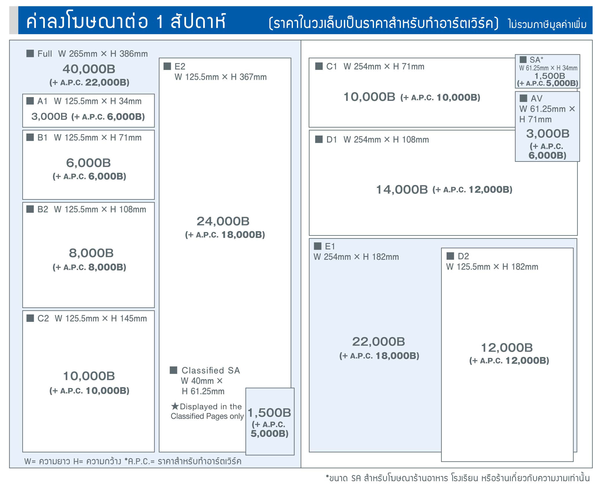 • ค่าโฆษณาข้างต้นยังไม่รวมภาษีมูลค่าเพิ่ม 7%