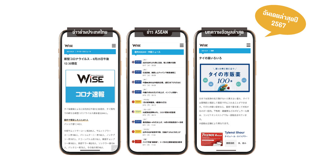 นอกจากนี้ ในส่วนของเว็บไซต์ “WiSE Digital” ที่เผยแพร่ข่าวสารล่าสุดแล้ว เรายังครอบคลุมไปถึงข้อมูลการใช้ชีวิตในไทยด้วย ทำให้มีชาวญี่ปุ่นที่เข้าชมเว็บไซต์ของเราในญี่ปุ่นก่อนที่จะมาเที่ยวหรือทำงานในไทยมากมาย เกิดเป็นแนวคิด “ถ้าคิดถึงไทย ให้คิดถึง WiSE!”