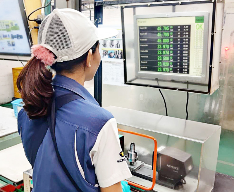 THAI IKEDA KAKINUMA เป็นบริษัทร่วมทุนระหว่าง Kakinuma Manufacturing ผู้เชี่ยวชาญด้านการกลึงแปรรูปที่แม่นยำ ซึ่งมีสำนักงานใหญ่ในจังหวัดกุมมะ และบริษัท THAI IKEDA MFG. ซึ่งเป็นบริษัทบริการอัดปั๊มขึ้นรูปโลหะ เราจัดหาสินค้าที่มีมูลค่าเพิ่มสูงไว้เสมอเพื่อตอบสนองความต้องการของลูกค้าที่หลากหลาย เราใช้อุปกรณ์ทันสมัย เช่น เครื่องวัด 3 มิติ (CMM) เครื่องวัดรูปร่างที่มีความแม่นยำสูง และเครื่องวัดความหยาบผิว เพื่อเพิ่มการรับประกันคุณภาพสินค้าชั้นดี