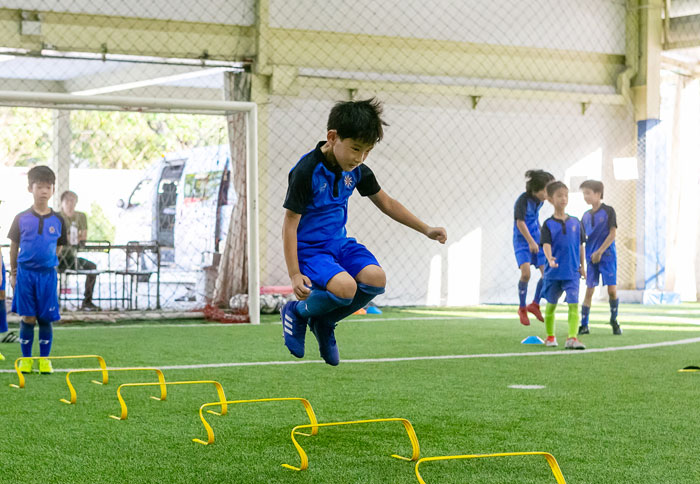 ในชั้นเรียนสำหรับเด็ก เราไม่ได้เน้นแค่เทคนิคการเล่นฟุตบอลเท่านั้น แต่ยังเน้นที่การพัฒนาความสามารถด้านกีฬาอย่างการเคลื่อนไหวพื้นฐานของร่างกายอีกด้วย