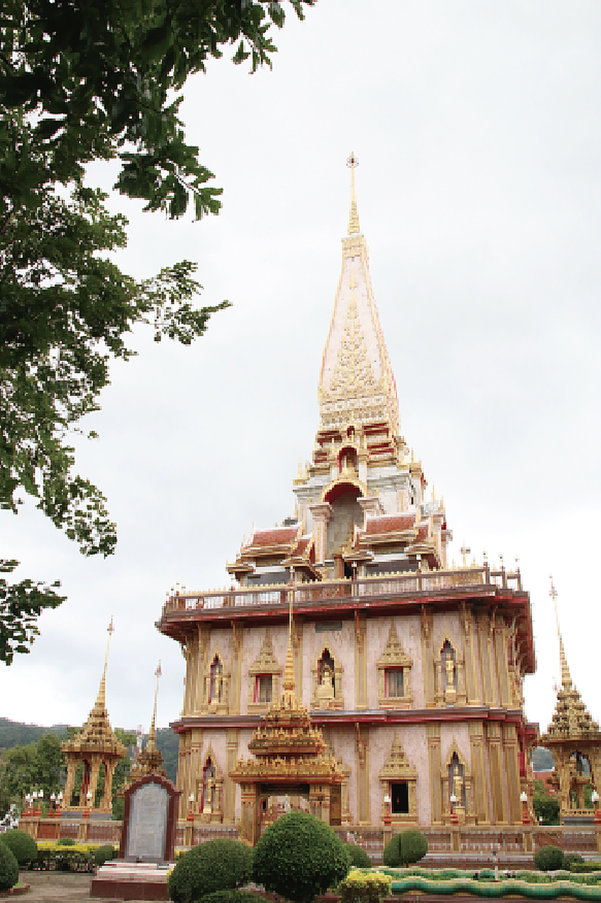 本堂と3階建ての仏舎利塔がある、プーケット最大の仏教寺院。本堂内には3人の高僧を模した仏像が安置されており、健康・商売・学業といった願い事が叶うと信じられている。