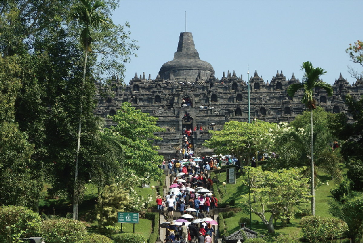 インドネシアのジャワ島中央部、火山に囲まれたケドゥ盆地に位置する“世界最大の大乗仏教遺跡”。密林の奧に眠っていた同遺跡は、シャイレーンドラ朝時代の760〜850年に建立され、仏教における宇宙観を示す立体曼荼羅だと考えられています。回廊内の壁には、仏陀の生涯やインドの説話が1460面に渡って描かれ、周囲に並ぶ仏像や釣鐘型卒塔婆(ストゥーパ)も必見です。