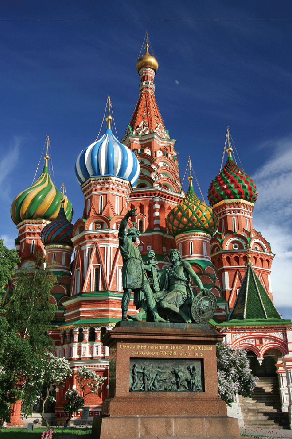モスクワの中心部に位置するクレムリン(城壁)は、4つの宮殿と大聖堂からなる城塞。その壁の内側には、大小新旧さまざまな宮殿、聖堂建築、20の塔(バーシニャ)などが林立しています。また、クレムリンの南側に位置する赤の広場内で圧倒的な存在感を放つのが、ロシア正教会の「ワシリー大聖堂」。カラフルで個性的な佇まいは、撮影スポットとしても人気です。