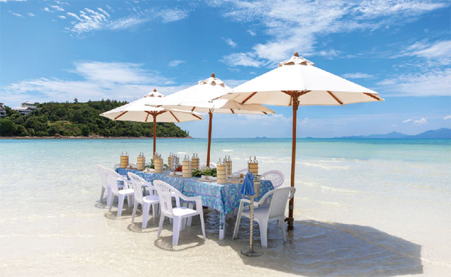 また、島とホテルを丸ごと貸し切りにして、専用ヨットでの日帰り旅行などを楽しめるラグジュアリーなパッケージプランも提供中(620,000B〜/1泊)。