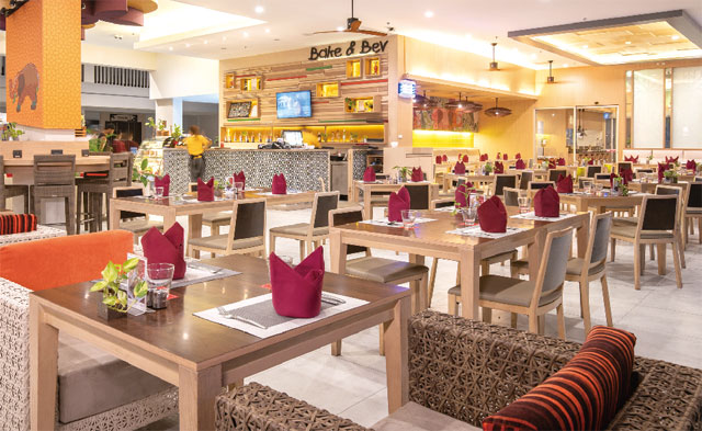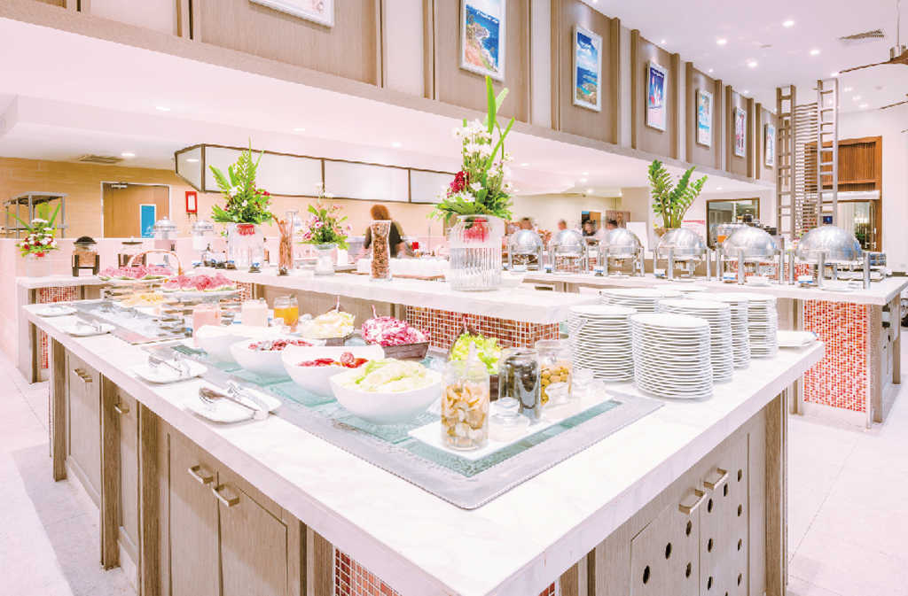 レストランでは多国籍料理を提供し、バーにはタイ産ワインやウイスキーも。