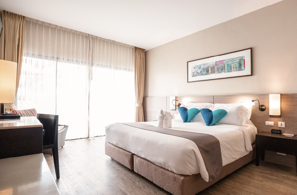 眼前にはプーケットを代表するパトンビーチがあり、一歩外に出ればシーフードレストランやカフェ、ナイトマーケット、ネオン煌くバーが建ち並ぶバングラ通りなど、朝から夜まで楽しめるスポットがすぐそばに。