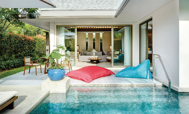 島内には全6タイプ、22棟のヴィラが点在し、全室専用のプール付き。