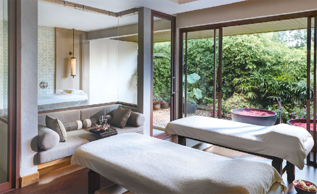 北タイ料理を取り入れたレストランや緑に囲まれたテラスカフェ、洗練されたスパなどリラックスできる施設が充実しています。