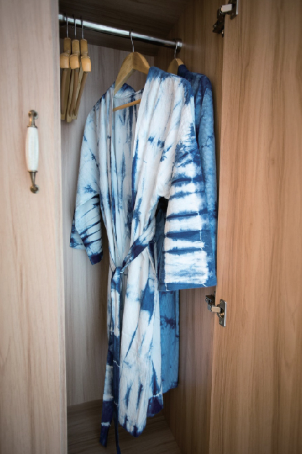 バスローブは地元で 手掛けるインディゴ染め