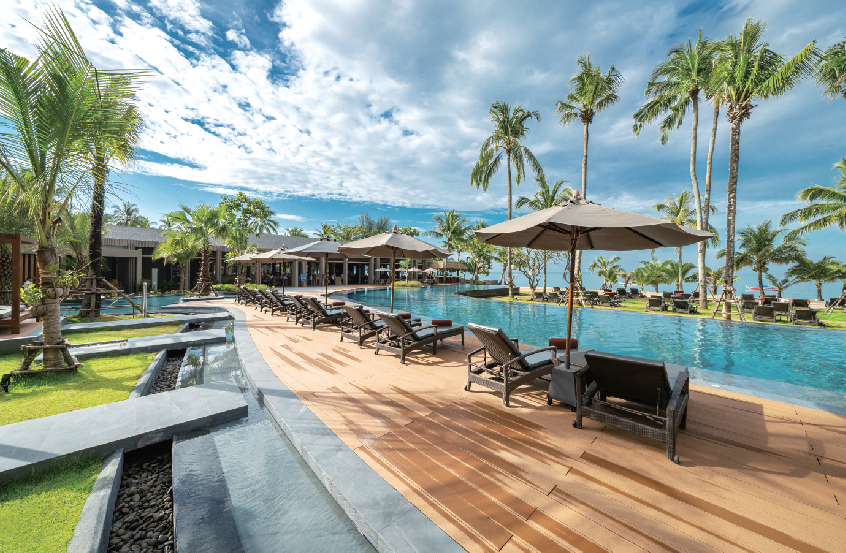 素朴さが残るタイ南部・パンガー県で、ひときわ洗練された雰囲気を漂わせるのがこちら。海を眼前に望む好立地に加え、「船の帆」をテーマに、建物をはじめプールや通路などに鋭角を取り入れるデザインが話題を呼んでいます。もちろん、各部屋から見える眺望も抜群です。