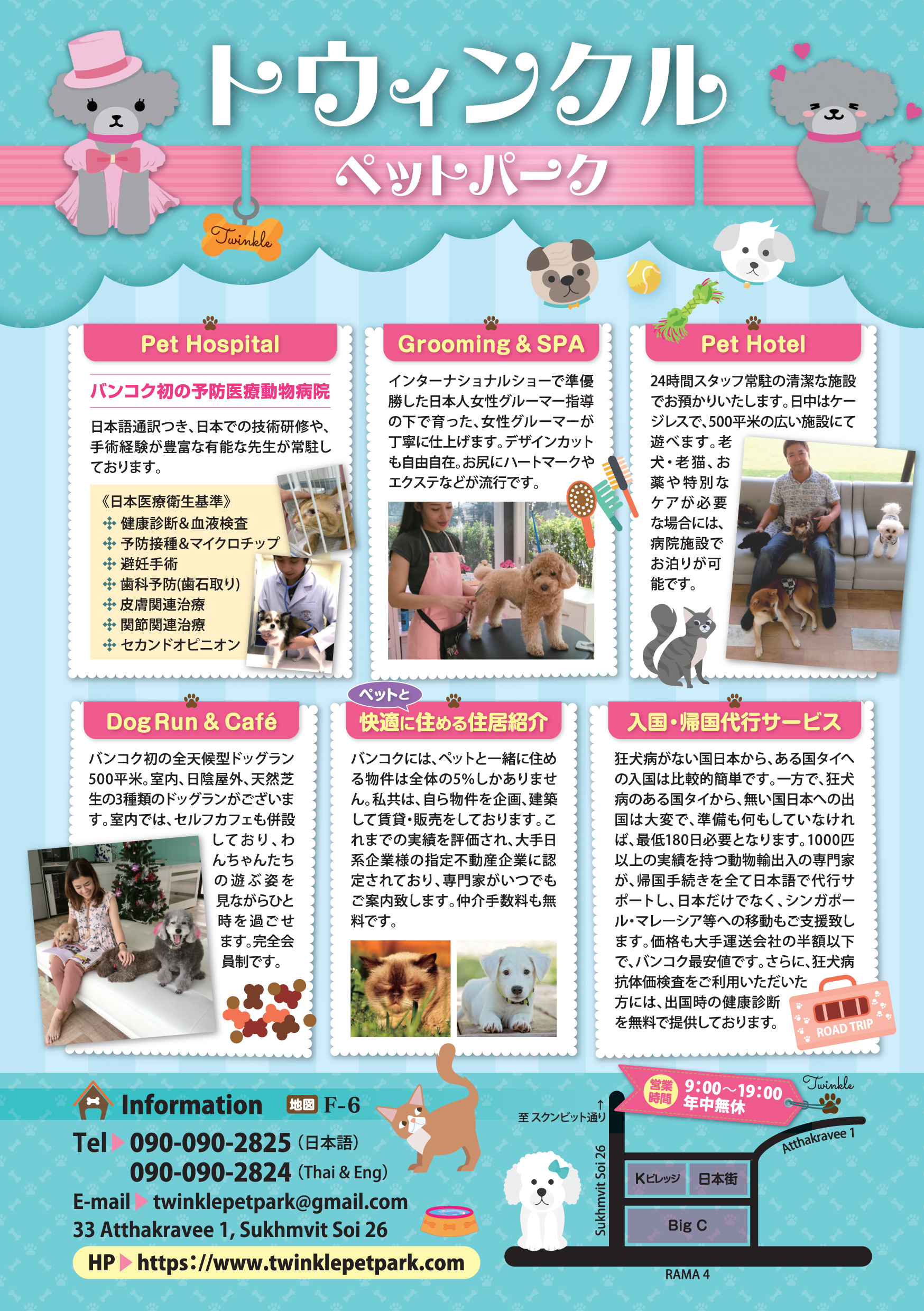 2018.04.17 その他 トウィンクル トウィンクル HP : www.twinklepetpark.com タイ国内で引越しするなら今が狙い目! dearlife by RENOSYが1年間の賃貸契約で8,000B分の商品券プレゼントキャンペーン実施 タイにおいて日本人駐在員向け賃貸及び日本不動産投資サービスを提供する「dearlife by REN… DYMクリニック 2024-2025年用インフルエンザワクチンの取り扱い開始 タイでは1年を通してインフルエンザに感染する可能性があるため、ワクチンの接種が推奨されている。DYM… この記事をSNSでシェア! Tweet Share LINE リンクをコピー