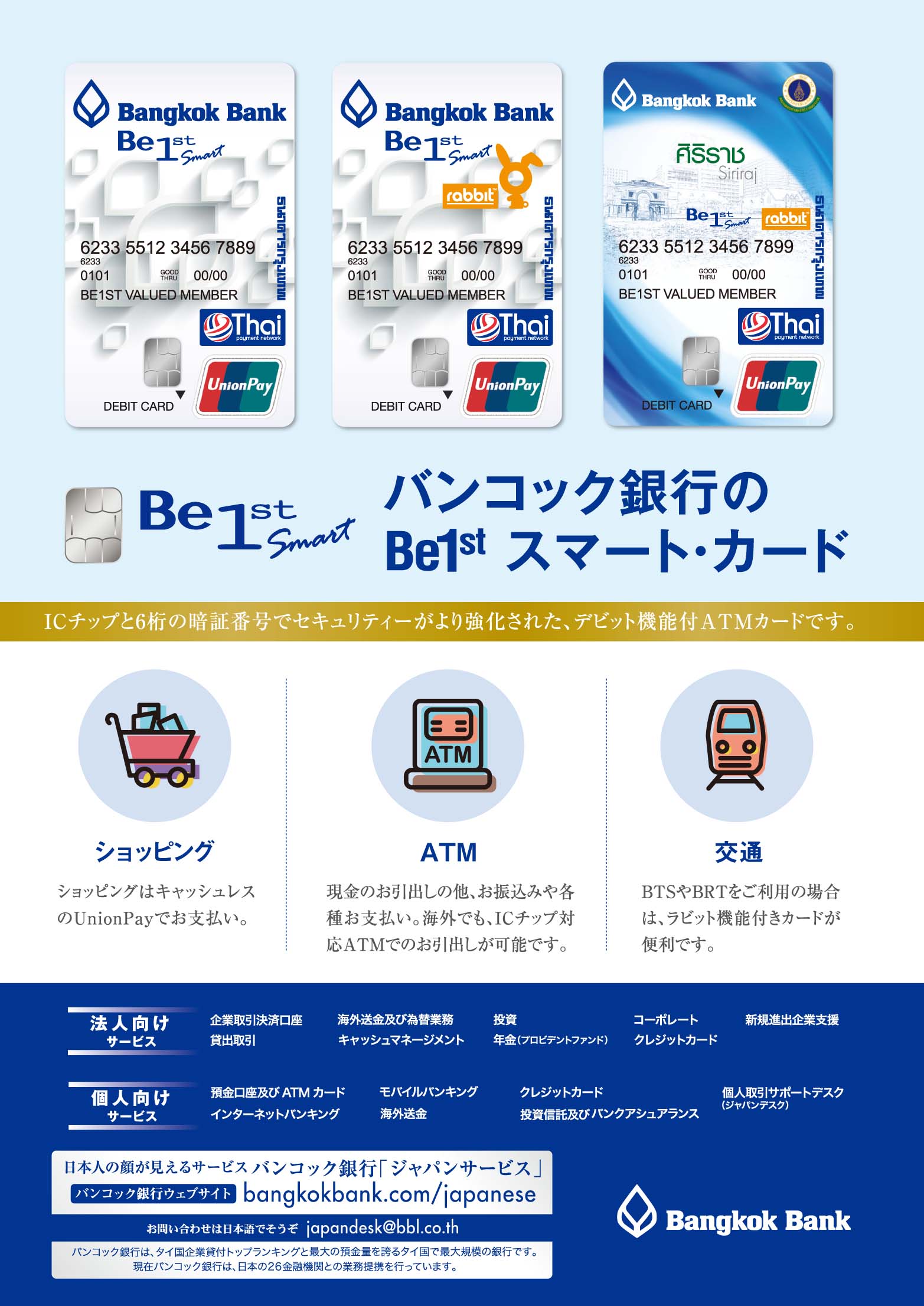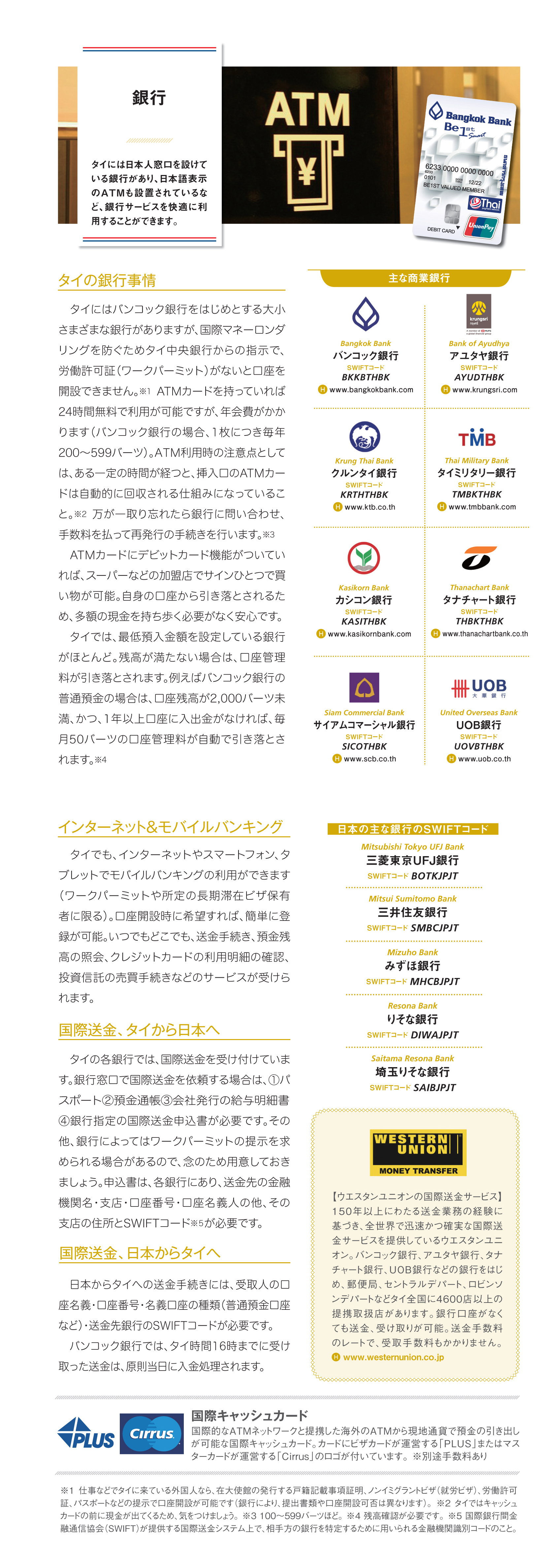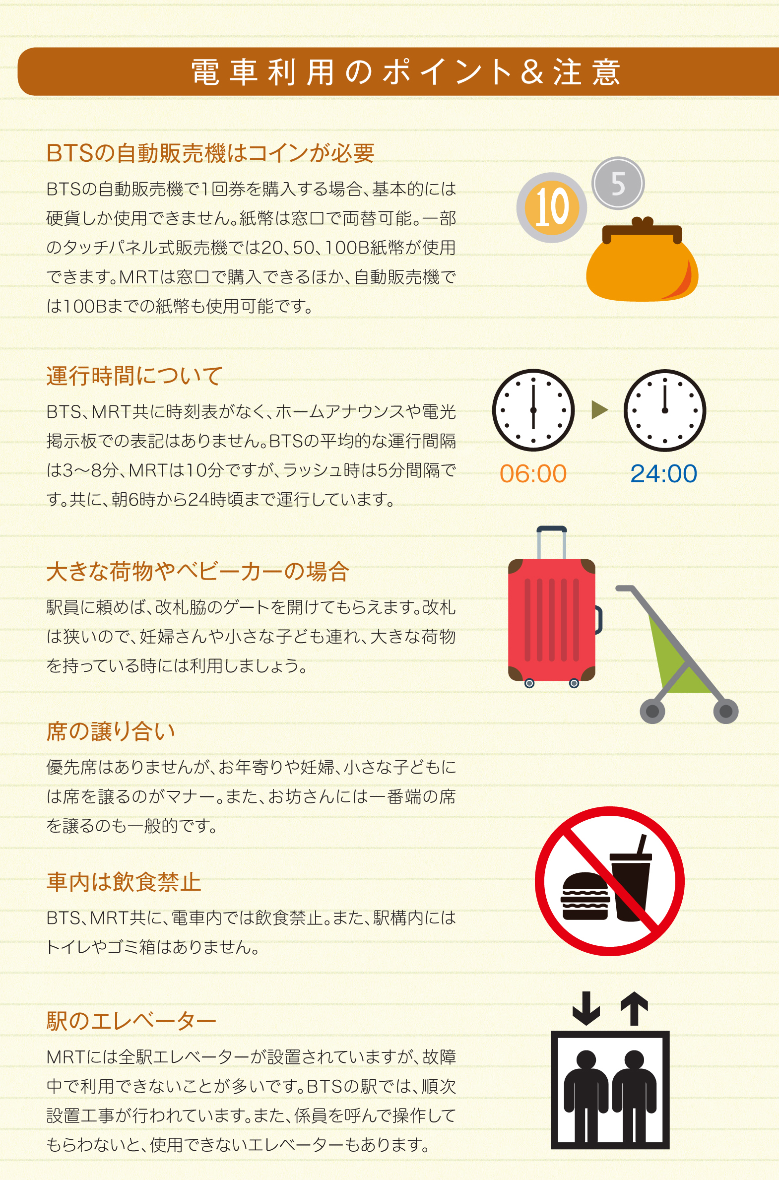 2018.05.1 その他 WiSE Family Bangkok 2018【1】 CONTENT INDEX 第1章 概要 タイの基礎知識 バンコク広域MAP シラチャMAP バンナーMAP パタヤMAP タイの1年 おしえてタイランド 第2章 交通 バンコクの路線図 BTS(高架鉄道) MRT 電車利用の注意 タクシー シーロー 路線バス スワンナプーム国際空港 ドンムアン国際空港 指差しガイド(移動編) タクシーなどで使える基本タイ語 第3章 生活 携帯電話 銀行 クレジットカード ビザ Q&A【お金編】 タイの保険あれこれ 郵便 Q&A【日常生活編】 Q&A【医療編】 第4章 住居 バンコクエリアガイド 部屋探し Q&A【アヤさん編】 ペットと暮らす 害虫対策 Q&A【住居編】 第5章 帰国 本帰国の準備 教育の準備 CLIENTS INDEX 学校 立命館慶祥 金融・保険 AEON バンコック銀行 ほけんの110ばん クリーニング 喜久屋 携帯電話 BERRY MOBILE 浄水器 CKMA ショッピング サイアムシティマート パリミキ 日用品 アース 引っ越し 日本通運 ヤマタネ 不動産会社 紅樹・HASCO すずき不動産 峯岸コーポレーション ペット トウィンクル ホテル THONGLOR PET HOSPITAL レンタカー 配車アプリ RYO&F GRAB VISA SABAIJAI CONSULTING タイで働く日本人に特化した スカウト転職サイト「タイスカウト」 サービス開始!(完全無料) 株式会社サンクアジアは5月2日、日タイ転職に特化したスカウト型の転職サイト「Thai Scout(タ… 「MITSUKOSHI DEPACHIKA」新年ギフトセット「GIFT FROM THE HEART」を発売 2026年の新春を彩る、日本スタイルのお歳暮・お年賀コレクション 「MITSUKOSHI DEPACHIKA」“心からの贈り物”という日本の贈る文化の精神を込めた新年… ことびあクリニック 夜22時まで対応可能なオンライン診療や お薬デリバリーも可能! DYMクリニック 2024-2025年用インフルエンザワクチンの取り扱い開始 タイでは1年を通してインフルエンザに感染する可能性があるため、ワクチンの接種が推奨されている。DYM… この記事をSNSでシェア! Tweet Share LINE リンクをコピー