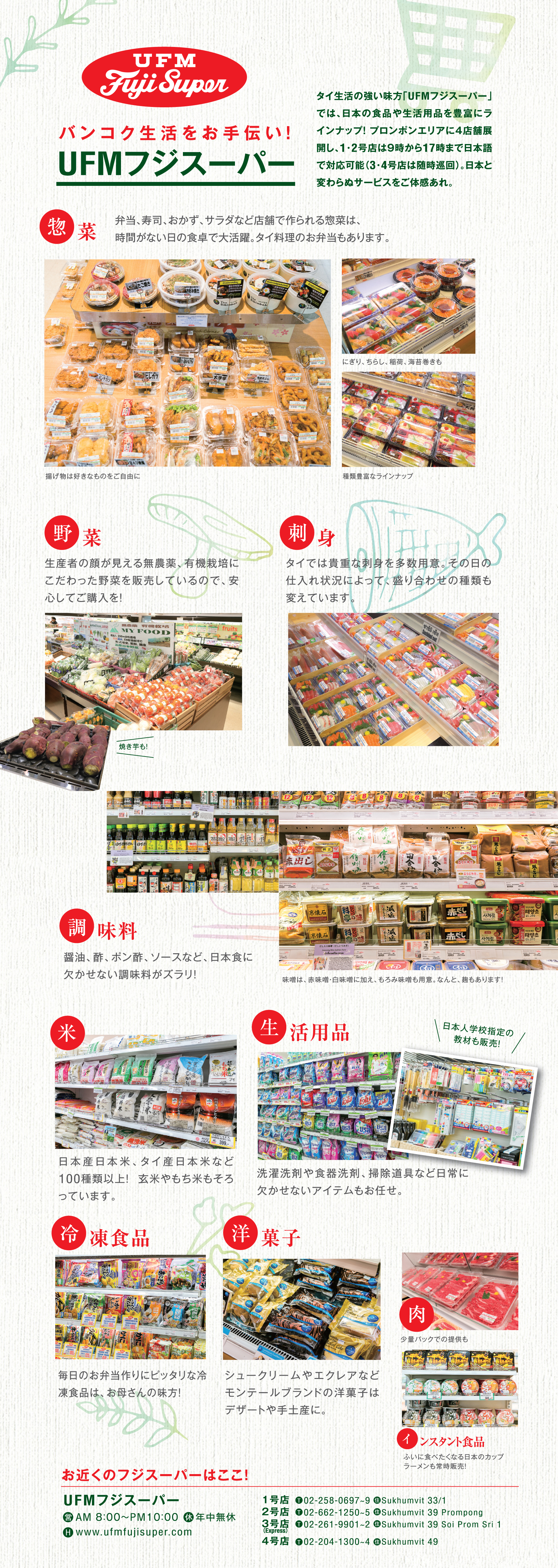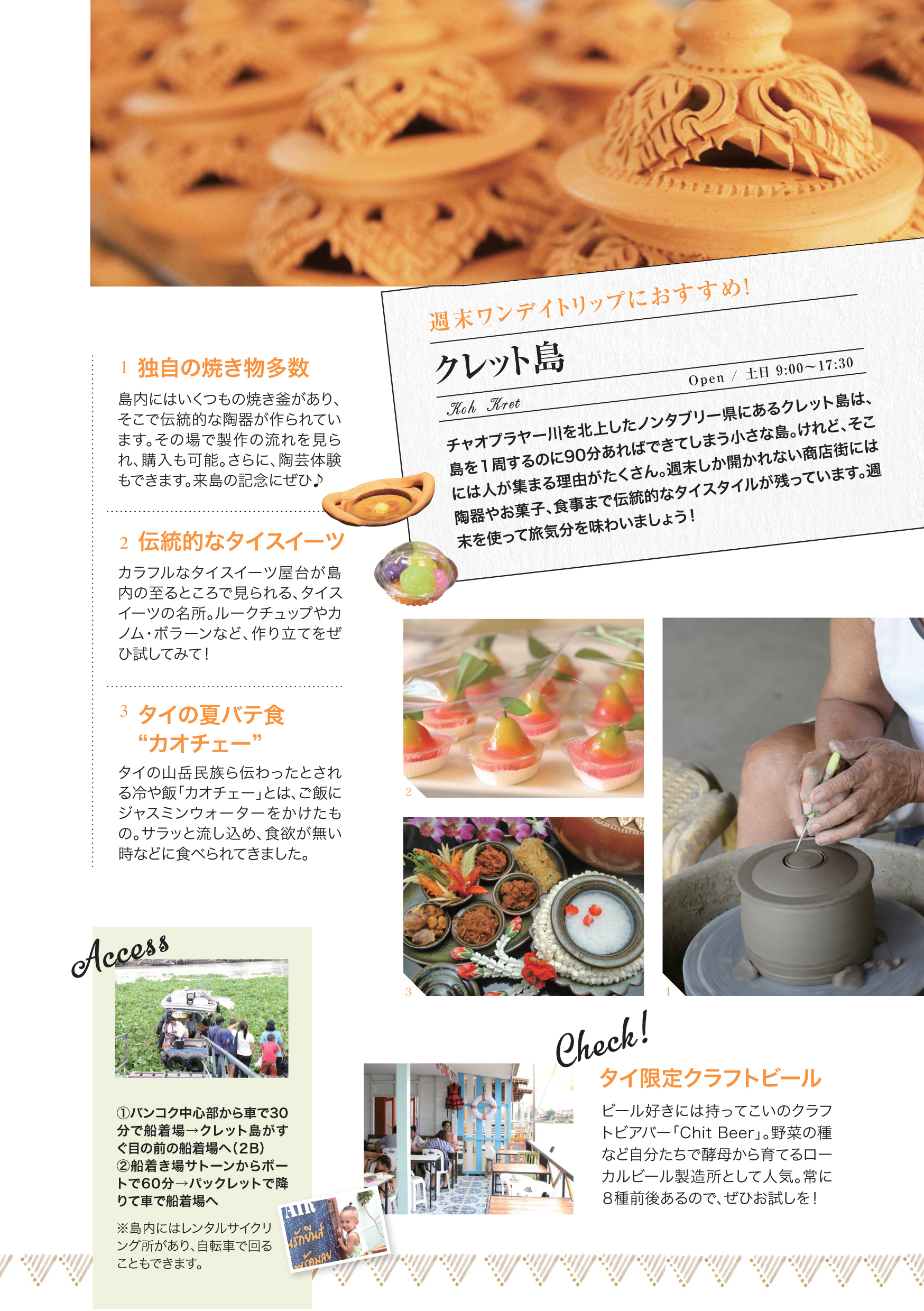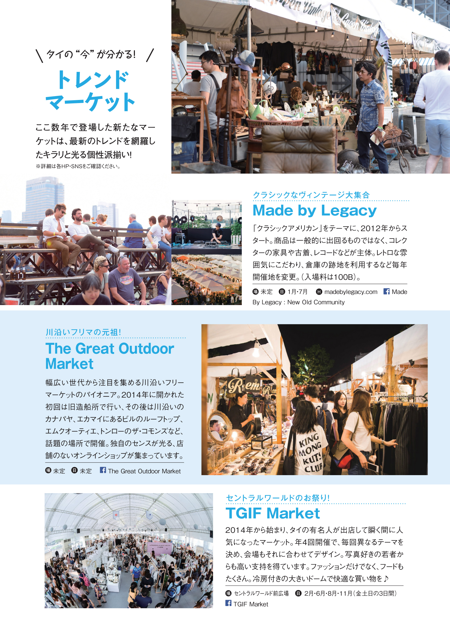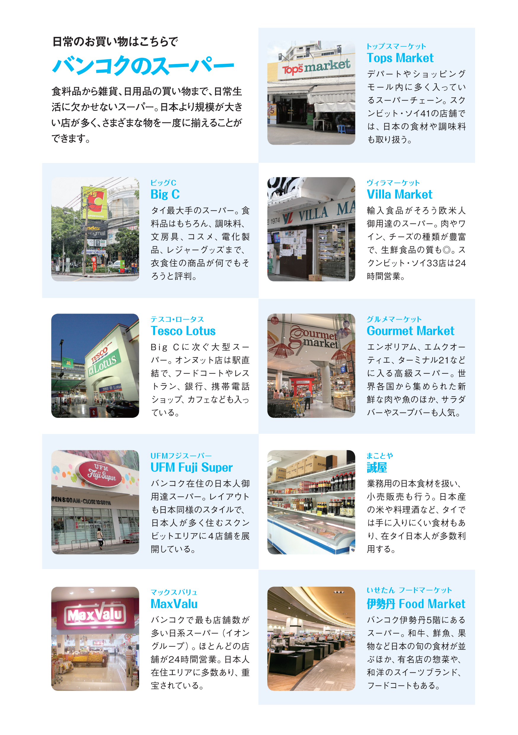 2018.05.4 その他 WiSE Family Bangkok 2018【3】 CONTENT INDEX 第9章 美容 お得にキレイを叶える 美容で使える基本タイ語 タイで買えるお手軽セルフケアグッズ ココナッツ名品 第10章 買物 BTS沿線のショッピングモール タイのファッションブランド ポイントカード ショッピングフェア2018スケジュール 「タイ生活をお手伝い」UFMフジスーパー バンコクのスーパー スーパーで使える基本タイ語 タイ雑貨・プロダクト ショッピングで使える基本タイ語 タイの市場 基本の“キ” 初めてのチャトチャックマーケット案内 ナイトマーケット ローカルマーケット トレンドマーケット 第11章 娯楽 チャオプラヤー川のすすめ 歴代国王ゆかりの寺院 アジアティーク クレット島 ヤワラート(中華街) タラートノイ旧市街 / ロン1919 クディチン タイでゴルフ! スポーツ施設 ヨガ ファミリースポット カラオケ 映画館 プレイスポット アート・ミュージアム 第12章 旅行 タイ国内リゾート タイの祭りへ行こう! 関西国際空港 免税店 永遠のモルディブ CLIENTS INDEX 美容・健康・マッサージ 湯の森 ANASTASIA BEVERLY HILLS AT EASE LET’S RELAX LUXE MASSAGE RAKUTEN SPA NATASA CLINIC ヘアサロン BALCONY SO ZAN ショッピング サイアムシティマート 東京メガネ チムリム フジスーパー 55TH THONGLOR CHICO DEJAVU HATOMUGI MBK CENTER MT.SAPOLA PEACE STORE SATIRA THE GIVING TEA 食品飲料 アサンサービス 三島食品 ヤマサ ヤマモリ 娯楽・スポーツ AEON FANTASY BANGKOK GOLF PORORO AQUA PARK THE TONGSAI BAY ZEN GOLFER’S FACTORY ことびあクリニック 夜22時まで対応可能なオンライン診療や お薬デリバリーも可能! THAI SCOUT(タイスカウト)登録するだけでタイ転職の可能性が拡がる タイスカウトは、タイ(バンコクおよびその周辺)で働きたい日本人、日本語堪能なタイ人を対象にしたスカウト型転職サービスです。 日にち限定ツアー満載!パンダバスの季節の遠足旅特集! パンダバスの季節の遠足旅では、季節に合わせた日付限定ツアーが盛りだくさん!季節限定ツアーを随時更新しておりますので、ぜひご覧ください。 LINEメンバーの方は、日帰りツアーは 5%OFF、パッケージツアーは 300THB OFF でご予約いただけます。この機会に、メンバー登録をお願いします♪(LINE : @pandabus) リリースから半年で登録者600名突破! タイ転職の新たな常識『タイスカウト』が、 求職者と企業に選ばれる3つの理由 2025年5月2日にリリースしてから半年が過ぎた。タイスカウトは、単なる転職サイトの一つに留まらず、… この記事をSNSでシェア! Tweet Share LINE リンクをコピー