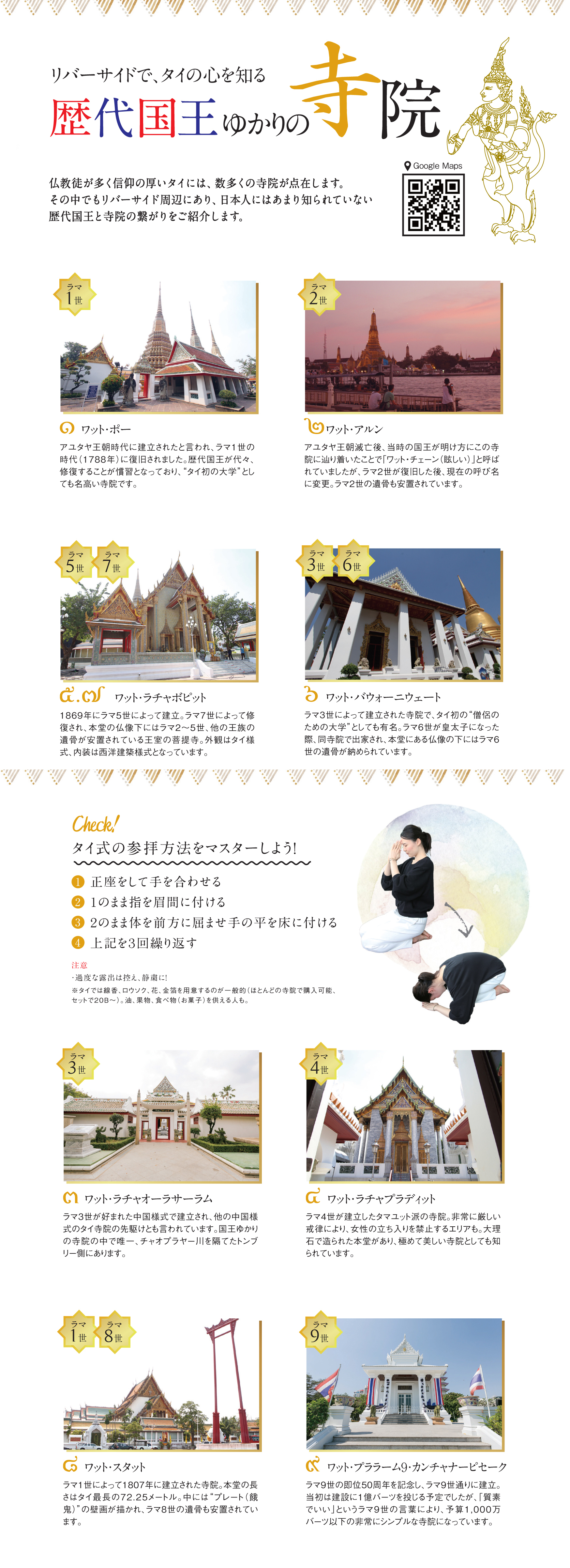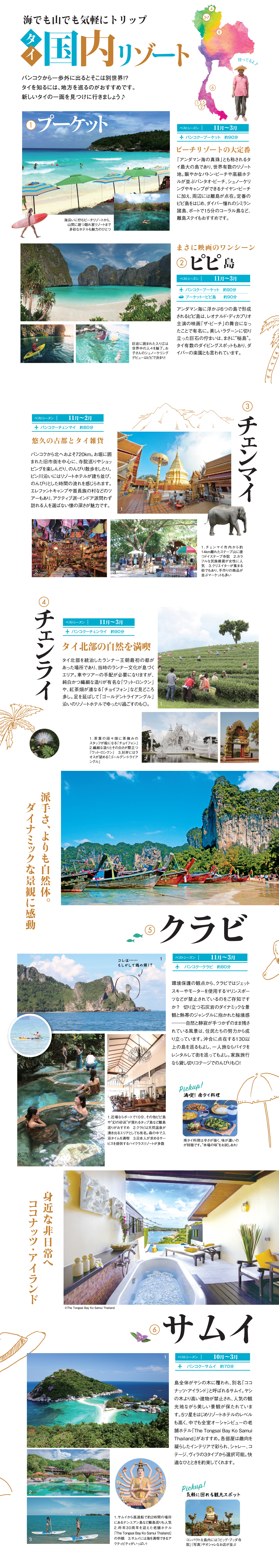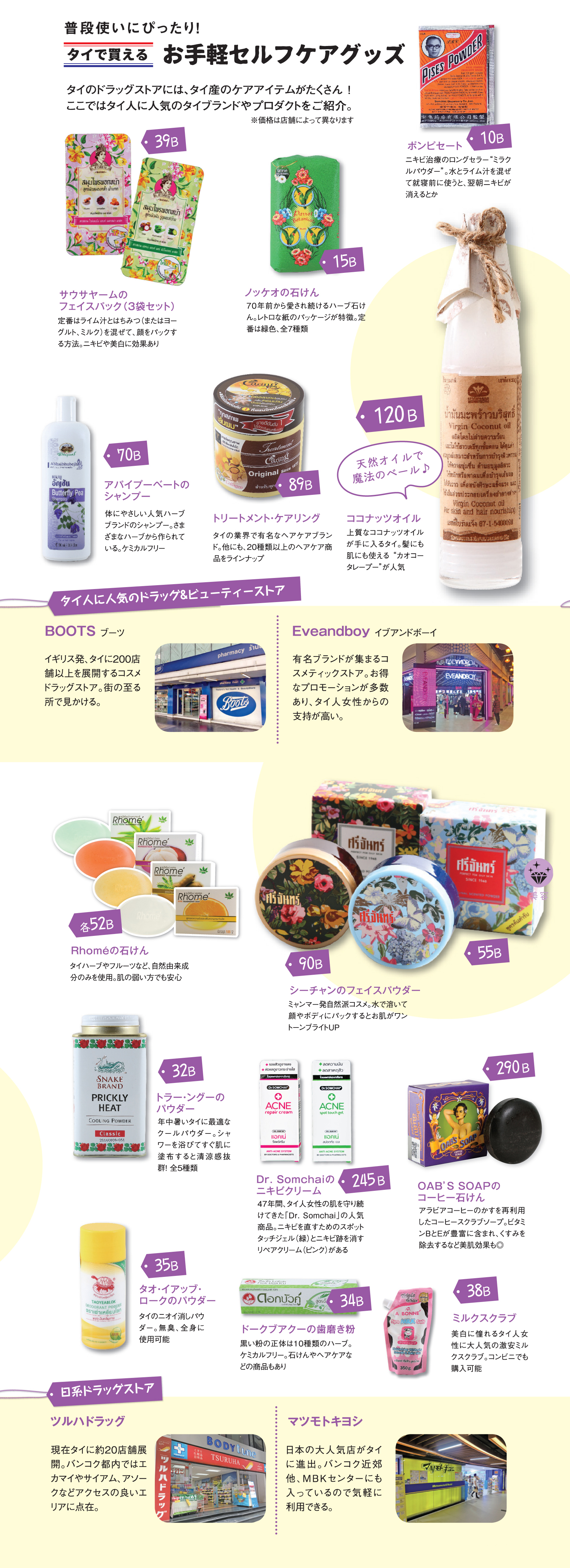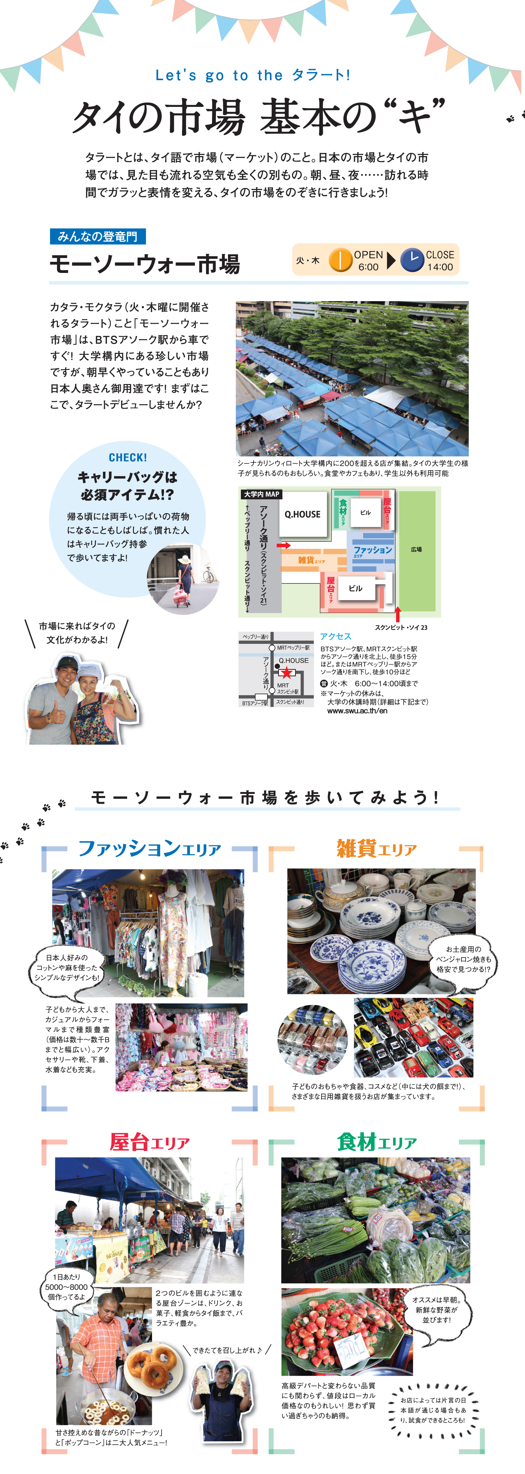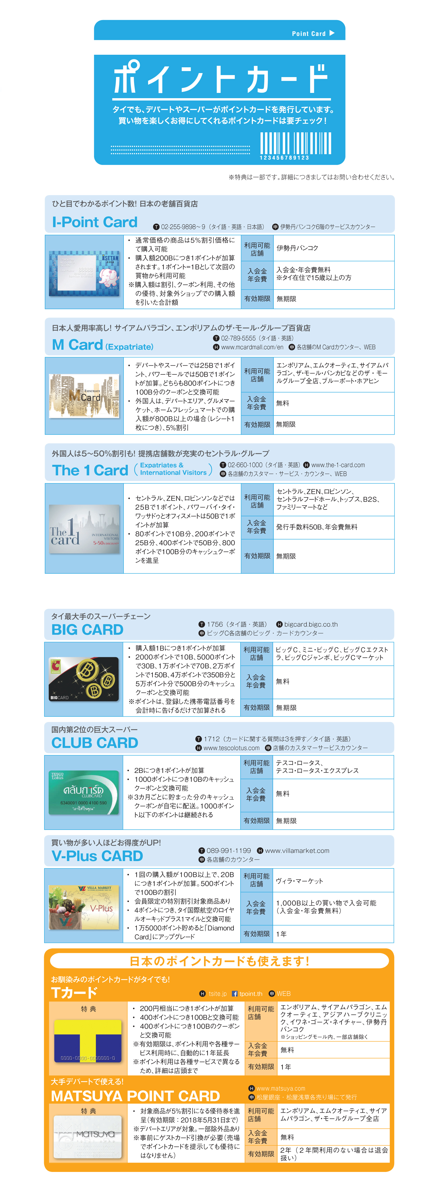 2018.05.4 その他 WiSE Family Bangkok 2018【3】 CONTENT INDEX 第9章 美容 お得にキレイを叶える 美容で使える基本タイ語 タイで買えるお手軽セルフケアグッズ ココナッツ名品 第10章 買物 BTS沿線のショッピングモール タイのファッションブランド ポイントカード ショッピングフェア2018スケジュール 「タイ生活をお手伝い」UFMフジスーパー バンコクのスーパー スーパーで使える基本タイ語 タイ雑貨・プロダクト ショッピングで使える基本タイ語 タイの市場 基本の“キ” 初めてのチャトチャックマーケット案内 ナイトマーケット ローカルマーケット トレンドマーケット 第11章 娯楽 チャオプラヤー川のすすめ 歴代国王ゆかりの寺院 アジアティーク クレット島 ヤワラート(中華街) タラートノイ旧市街 / ロン1919 クディチン タイでゴルフ! スポーツ施設 ヨガ ファミリースポット カラオケ 映画館 プレイスポット アート・ミュージアム 第12章 旅行 タイ国内リゾート タイの祭りへ行こう! 関西国際空港 免税店 永遠のモルディブ CLIENTS INDEX 美容・健康・マッサージ 湯の森 ANASTASIA BEVERLY HILLS AT EASE LET’S RELAX LUXE MASSAGE RAKUTEN SPA NATASA CLINIC ヘアサロン BALCONY SO ZAN ショッピング サイアムシティマート 東京メガネ チムリム フジスーパー 55TH THONGLOR CHICO DEJAVU HATOMUGI MBK CENTER MT.SAPOLA PEACE STORE SATIRA THE GIVING TEA 食品飲料 アサンサービス 三島食品 ヤマサ ヤマモリ 娯楽・スポーツ AEON FANTASY BANGKOK GOLF PORORO AQUA PARK THE TONGSAI BAY ZEN GOLFER’S FACTORY ことびあクリニック 夜22時まで対応可能なオンライン診療や お薬デリバリーも可能! THAI SCOUT(タイスカウト)登録するだけでタイ転職の可能性が拡がる タイスカウトは、タイ(バンコクおよびその周辺)で働きたい日本人、日本語堪能なタイ人を対象にしたスカウト型転職サービスです。 日にち限定ツアー満載!パンダバスの季節の遠足旅特集! パンダバスの季節の遠足旅では、季節に合わせた日付限定ツアーが盛りだくさん!季節限定ツアーを随時更新しておりますので、ぜひご覧ください。 LINEメンバーの方は、日帰りツアーは 5%OFF、パッケージツアーは 300THB OFF でご予約いただけます。この機会に、メンバー登録をお願いします♪(LINE : @pandabus) リリースから半年で登録者600名突破! タイ転職の新たな常識『タイスカウト』が、 求職者と企業に選ばれる3つの理由 2025年5月2日にリリースしてから半年が過ぎた。タイスカウトは、単なる転職サイトの一つに留まらず、… この記事をSNSでシェア! Tweet Share LINE リンクをコピー