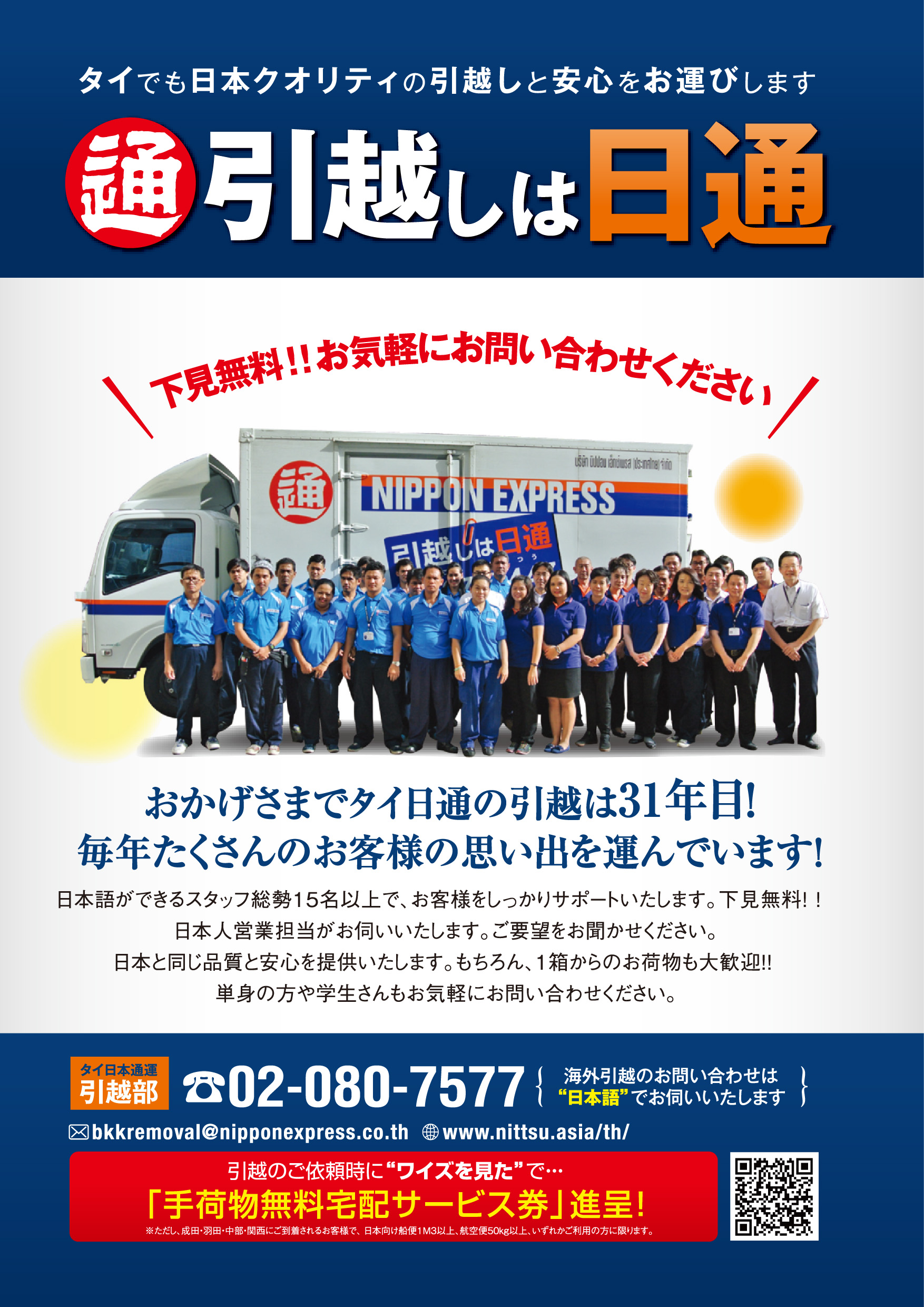 2019.05.3 WiSEファミリー, ピックアップ WiSE Family Bangkok 2019【1】 WiSE Family Bangkok 2019〜バンコク生活便利帳WiSE Family Bangkok 2019【2】 第1章「概要」を全て見る 知っておくべきタイの基礎知識 タイの一年6月27日 updated バンコク広域MAP シラチャMAP バンナーMAP パタヤMAP おしえてタイランド 第2章「交通」を全て見る バンコクの電車・路線図7月31日 updated タイの電車利用に必須!BTSラビットカードを徹底解説!3月21日 updated シーロー・バイクタクシー・トゥクトゥク・ソンテウ8月01日 updated バンコクの路線バス8月01日 updated タイのタクシー・目的地指差しガイド8月14日 updated タクシーで使えるタイ語フレーズ9月13日 updated バンコクの空港11月27日 updated おしえてタイランド 第3章「生活」を全て見る タイで携帯電話を使う12月19日 updated タイの銀行12月19日 updated クレジットカード12月19日 updated Q&A お金編 タイのビザ4月30日 updated タイの郵便12月19日 updated Q&A 日常生活編 第4章「住居」を全て見る バンコクでの賃貸・部屋探し5月13日 updated タイの害虫対策 Q&A 住居編5月15日 updated Q&A お手伝いさん・メイドを雇う編10月20日 updated タイでペットと暮らす バンコクのペット可物件まとめ5月15日 updated 第5章「帰国」を全て見る 本帰国の準備2月26日 updated 本帰国後の教育の準備1月24日 updated タイ国日本人会10月09日 updated 日本人コミュニティ 同窓会10月09日 updated 日本人コミュニティ サークル12月19日 updated 日本人コミュニティ 県人会11月13日 updated CLIENTS INDEX 学校 金沢工業大学国際高専 工学院大学付属中学・高校 函館ラ・サール中学・高校 宝仙学園中学・高校 目白研心中学・高校 立命館慶祥中学・高校 銀行・クレジットカード バンコク銀行 イオンクラブタイランドカード クリーニング 喜久屋 携帯電話 ベリーモバイル ショッピング サイアムシティマート 浄水器 CKMA 動物病院 トンローペット病院 引越し 日本通運 ヤマタネ 不動産会社 紅樹株式会社 すずき不動産 バンコクハウジングガイド バンコクプロパティガイド 峯岸コーポレーション WiSE Family Bangkok 2019〜バンコク生活便利帳WiSE Family Bangkok 2019【2】 DYMクリニック 2024-2025年用インフルエンザワクチンの取り扱い開始 タイでは1年を通してインフルエンザに感染する可能性があるため、ワクチンの接種が推奨されている。DYM… タイで働く日本人に特化した スカウト転職サイト「タイスカウト」 サービス開始!(完全無料) 株式会社サンクアジアは5月2日、日タイ転職に特化したスカウト型の転職サイト「Thai Scout(タ… THAI SCOUT(タイスカウト)登録するだけでタイ転職の可能性が拡がる タイスカウトは、タイ(バンコクおよびその周辺)で働きたい日本人、日本語堪能なタイ人を対象にしたスカウト型転職サービスです。 JPグリーンデンタルクリニック × WiSE 特別対談 「日本人のための総合歯科」として在タイ日本人が通うJPグリーンデンタルクリニック。今回は同院の院長で… 日にち限定ツアー満載!パンダバスの季節の遠足旅特集! パンダバスの季節の遠足旅では、季節に合わせた日付限定ツアーが盛りだくさん!季節限定ツアーを随時更新しておりますので、ぜひご覧ください。 LINEメンバーの方は、日帰りツアーは 5%OFF、パッケージツアーは 300THB OFF でご予約いただけます。この機会に、メンバー登録をお願いします♪(LINE : @pandabus) パンダバス 【残席わずか】蒸気機関車で行くチャチュンサオ・ピンクガネーシャ観光 この記事をSNSでシェア! Tweet Share LINE リンクをコピー