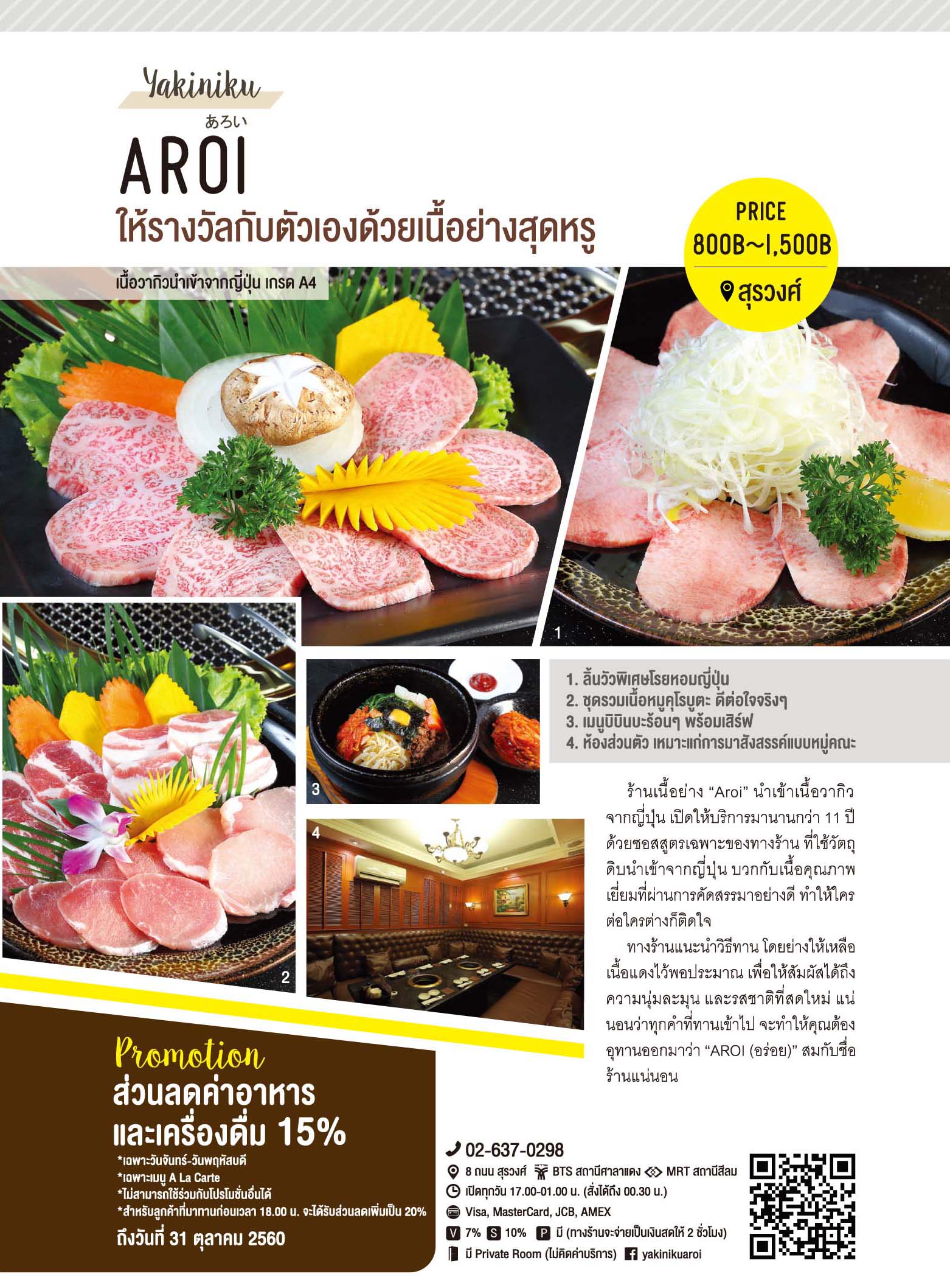 ร้านเนื้อย่าง “Aroi” นำเข้าเนื้อวากิวจากญี่ปุ่น เปิดให้บริการมานานกว่า 11 ปี ด้วยซอสสูตรเฉพาะของทางร้าน ที่ใช้วัตถุดิบนำเข้าจากญี่ปุ่น