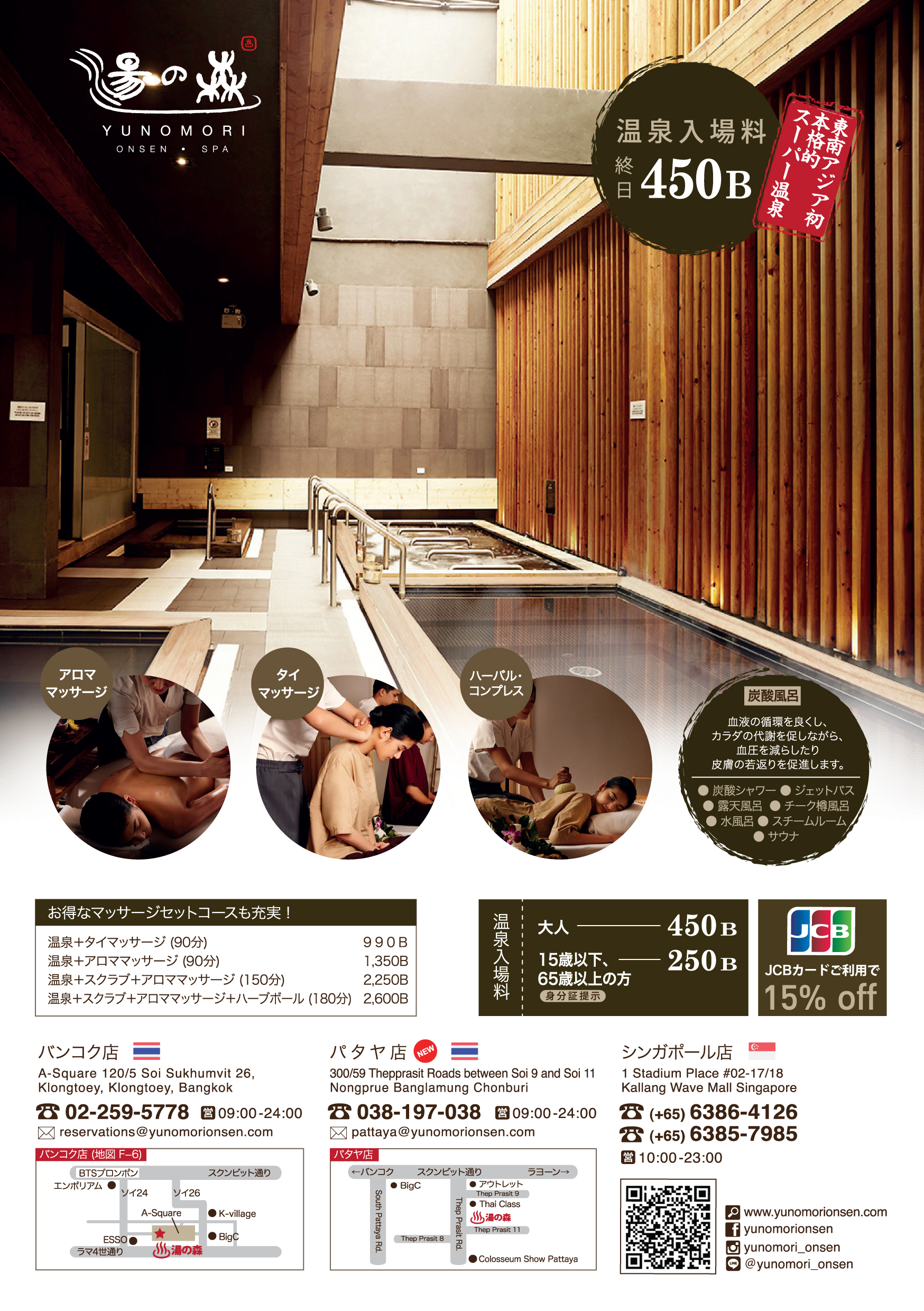 2018.04.17 その他 湯の森 湯の森 HP : www.yunomorionsen.com FB : yunomorionsen DYMクリニック 2024-2025年用インフルエンザワクチンの取り扱い開始 タイでは1年を通してインフルエンザに感染する可能性があるため、ワクチンの接種が推奨されている。DYM… パンダバス 【残席わずか】蒸気機関車で行くチャチュンサオ・ピンクガネーシャ観光 日にち限定ツアー満載!パンダバスの季節の遠足旅特集! パンダバスの季節の遠足旅では、季節に合わせた日付限定ツアーが盛りだくさん!季節限定ツアーを随時更新しておりますので、ぜひご覧ください。 LINEメンバーの方は、日帰りツアーは 5%OFF、パッケージツアーは 300THB OFF でご予約いただけます。この機会に、メンバー登録をお願いします♪(LINE : @pandabus) この記事をSNSでシェア! Tweet Share LINE リンクをコピー